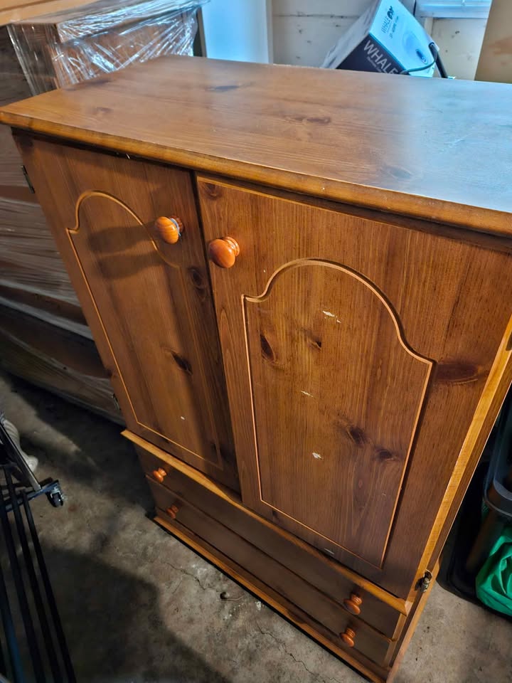Solid wooden cabinet, 2 to choose from. 33 inch wide x 18 deep x 49 high. Pick up from South Vancouver Granville area. $50 each firm or take them both at a discount. Call Geoff [hidden information]