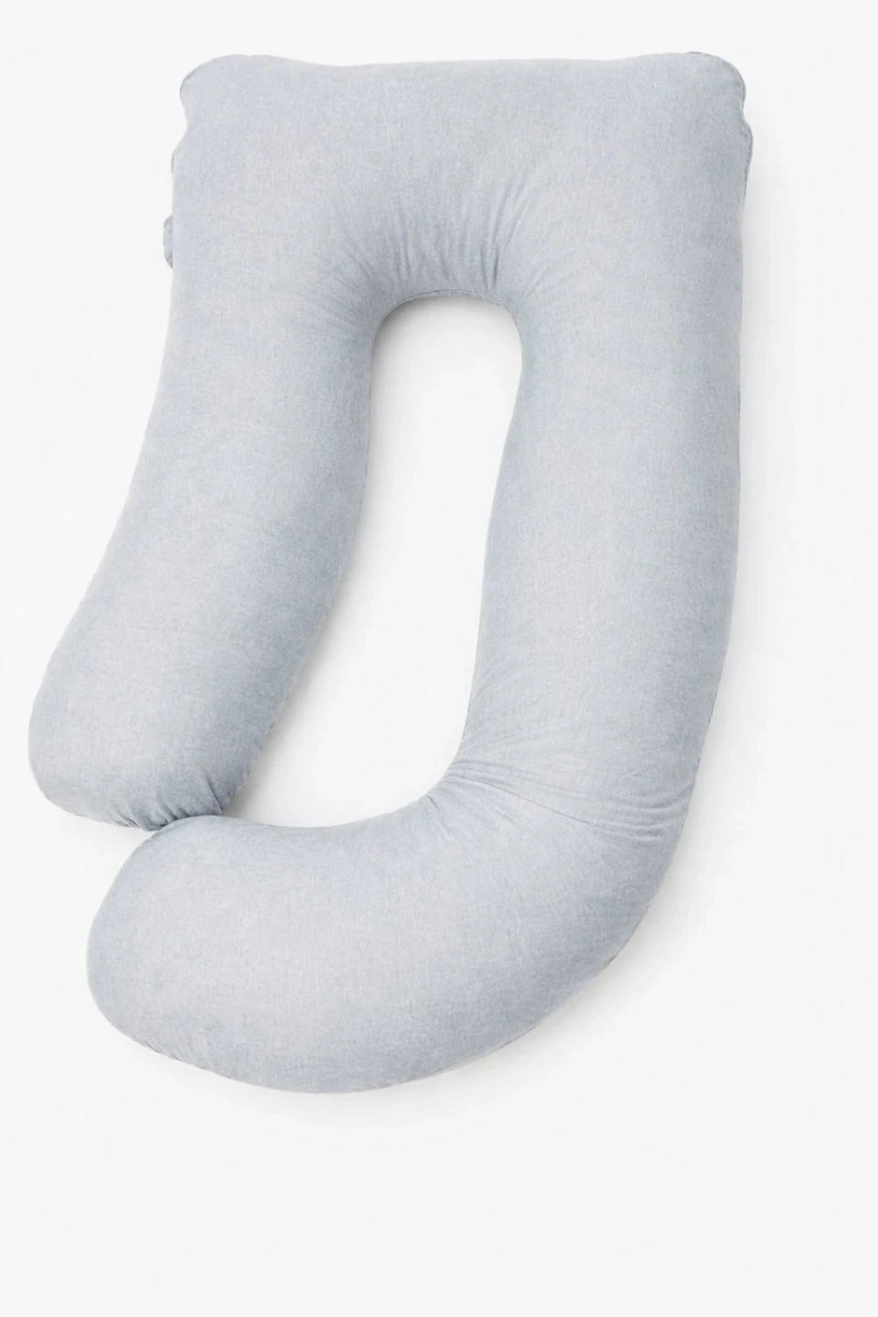 This U-shaped pillow provides full body support. It's made with a soft, breathable fabric and filled with plush cushioning. This pillow is designed to help with comfort during pregnancy.