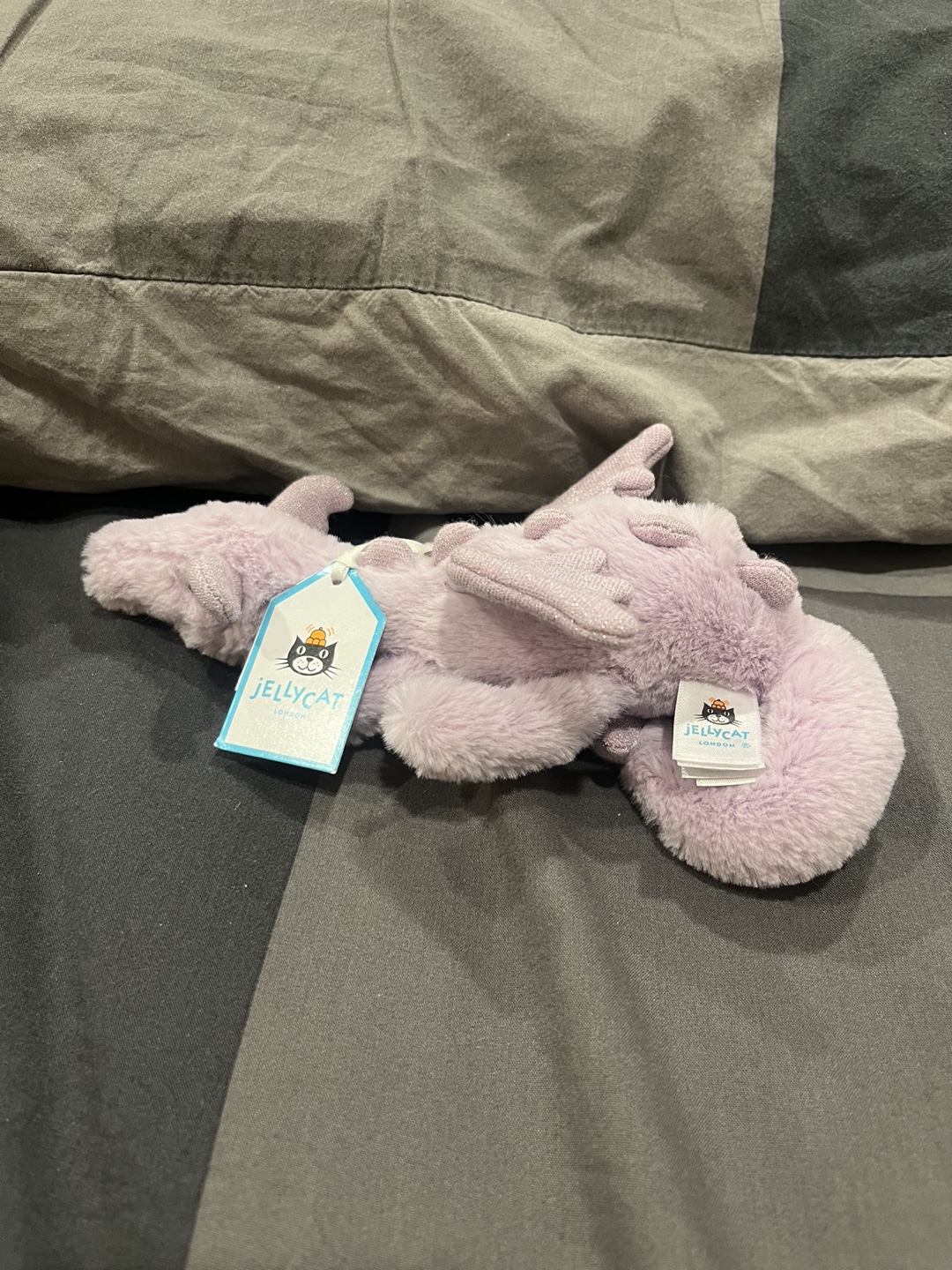 1 / 21 / 2Buy & SellJellycat Lavender Dragon Bag CharmJellycat Lavender Dragon Bag Charm$20Adorable lavender dragon keyring. Soft plush material. Perfect for bags or keys. Gently used.WHERE TO MEETStarbucks RimrockView MapSELLERshnubsSheppard West12913 reviews0 chats·0 favorites·34 viewsSEND CHAT TO SELLERHi shnubs! I’m interested in your listing.Hi shnubs! I’m interested in your listing.Get the Karrot app to chatSign In to chat