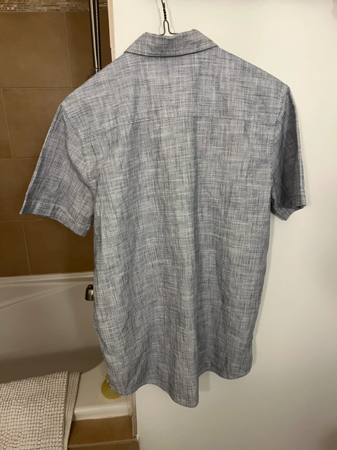 This is a Cromwell men’s short sleeve collared shirt. It's a size M. 100% cotton although it comes across as a linen blend.