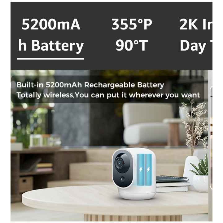 COCOCAM 2K Indoor Pan/Tilt Security Camera with 5200mAh Battery, WiFi Camera,Wireless for Baby Monitor/Pet/Home Security, AI Recognition, PIR Human Detection, 2.4G WiFi