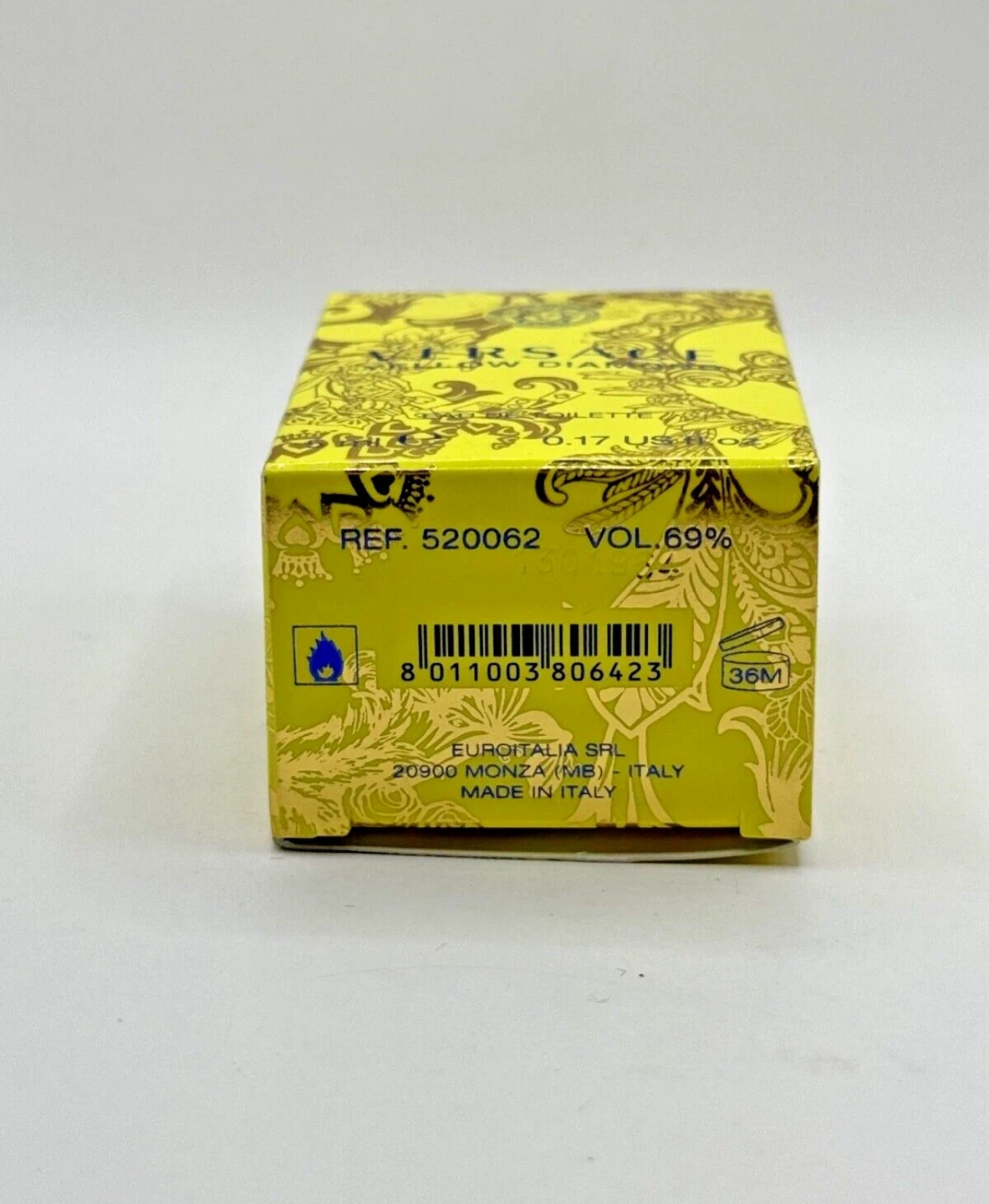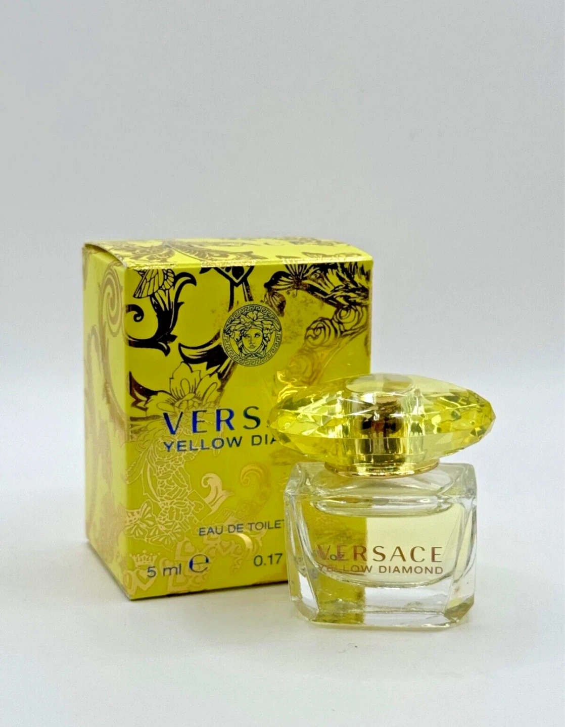 Versace Yellow Diamond Eau de Toilette. 5 ml bottle. Includes original box. Made in Italy.