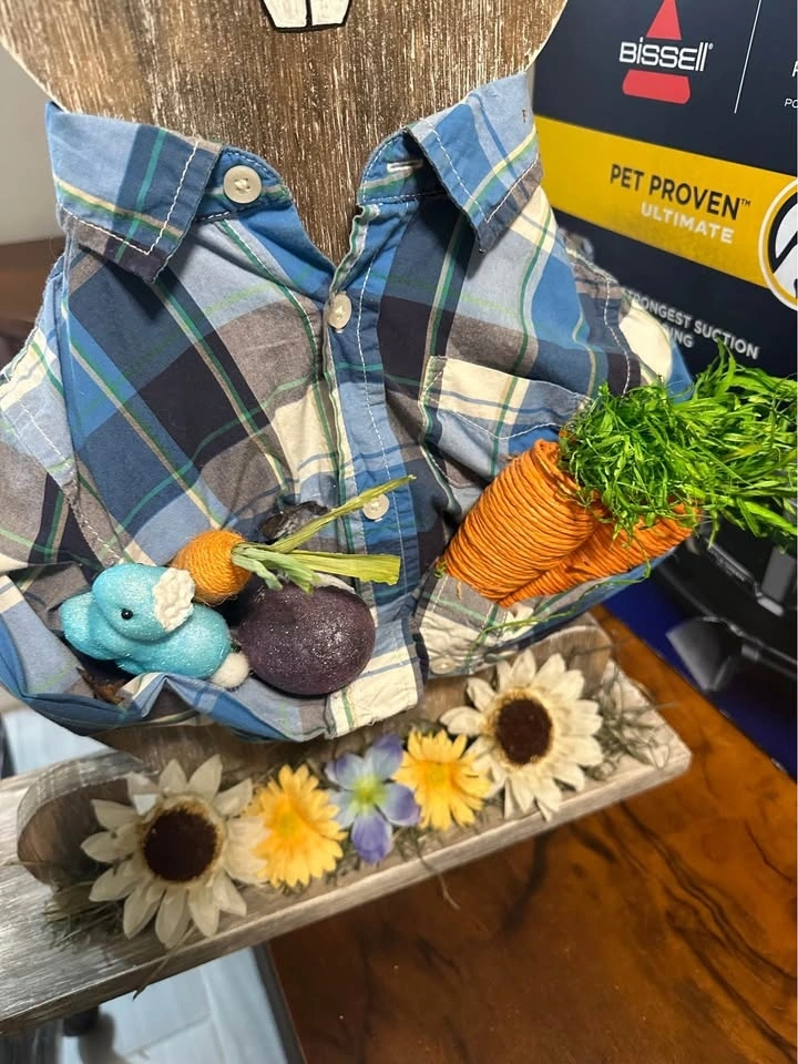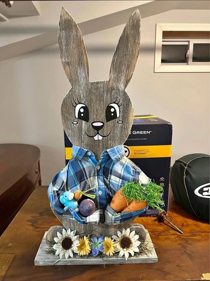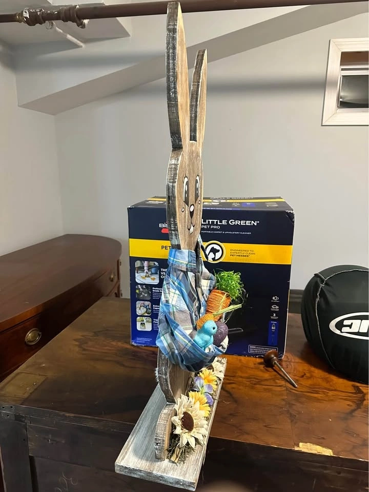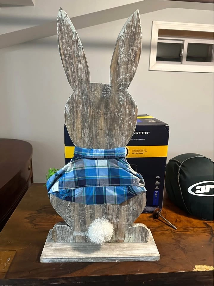 Buy & SellWooden Easter bunnyWooden Easter bunny$25Decorative wooden Easter bunny, crafted with a rustic look wood featuring fabric clothing and flowers.WHERE TO MEETCheck LocationView MapSELLERverifiedIsraelMeriden600 reviews0 chats·0 favorites·1 viewsSEND CHAT TO SELLERHi Israel! I’m interested in your listing.Hi Israel! I’m interested in your listing.Get the Karrot app to chatSign In to chat