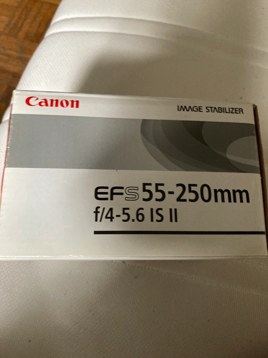 A Canon lens. It features image stabilization. It has focal lengths between 55-250mm. The f-stop is f/4-5.6. You'll be able to capture some truly stunning images with this.