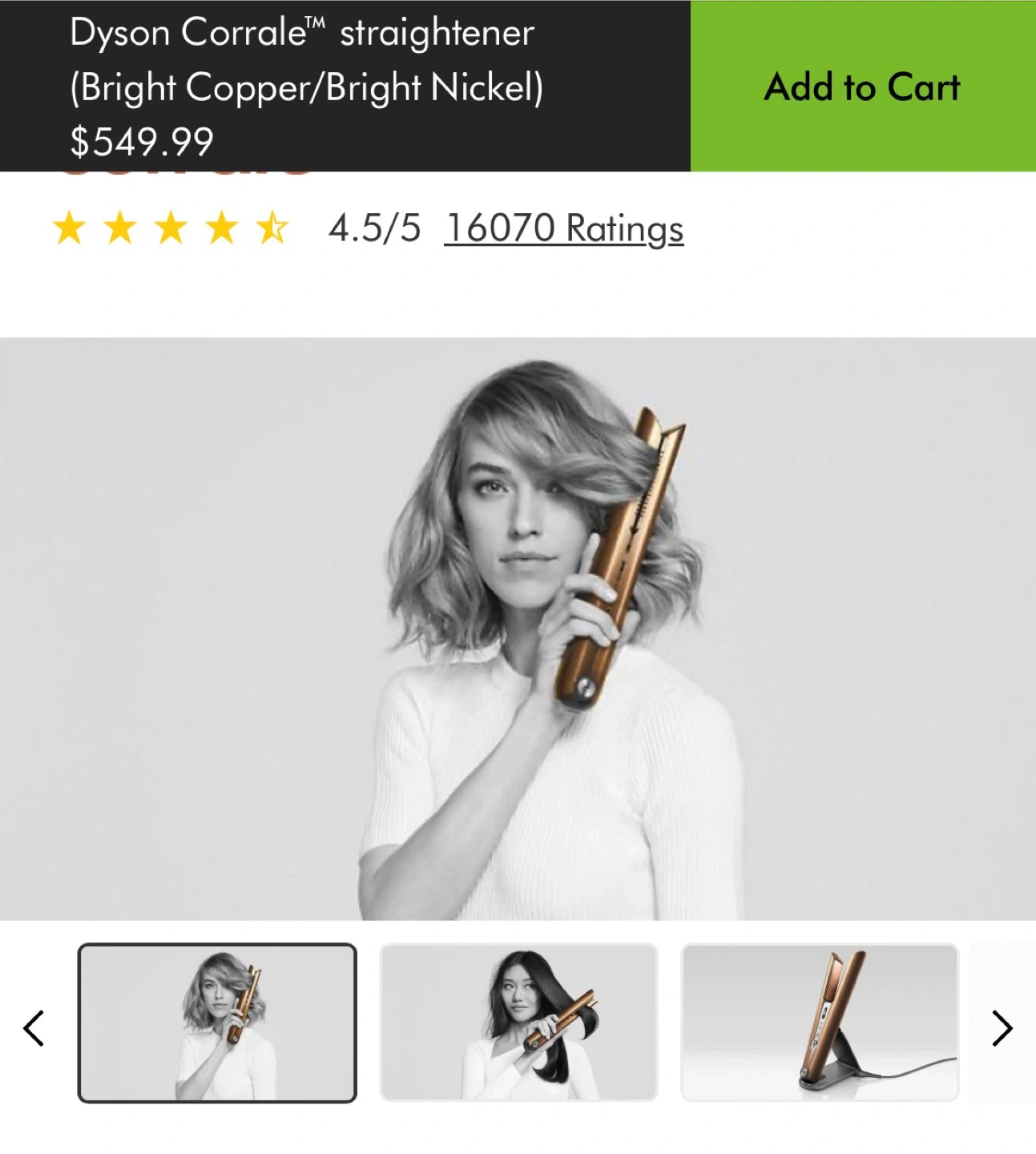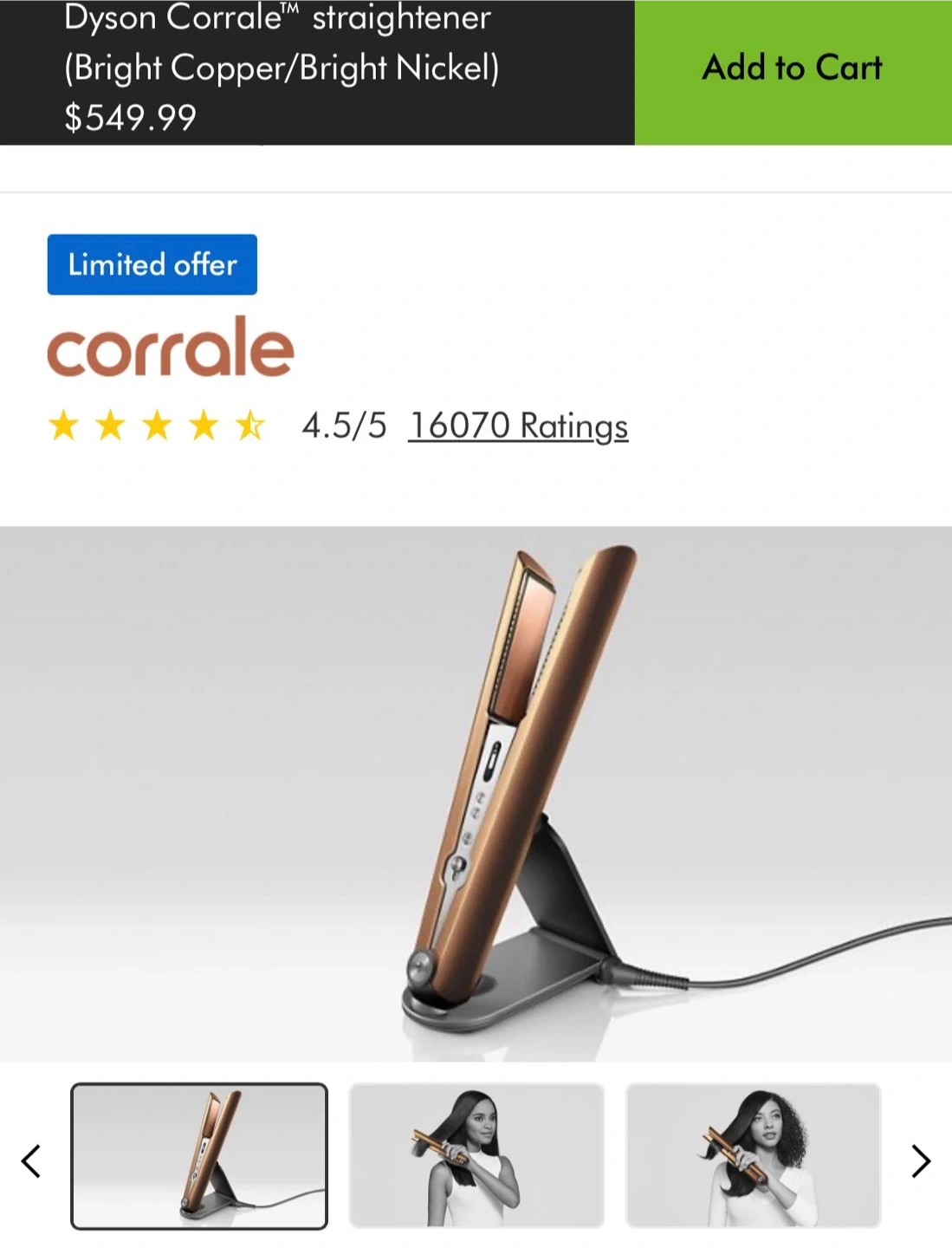 This is a Dyson Corrale straightener in Bright Copper and Bright Nickel. It's cord-free and engineered to create a range of styles with enhanced styling and half the damage. It comes with a charging stand.