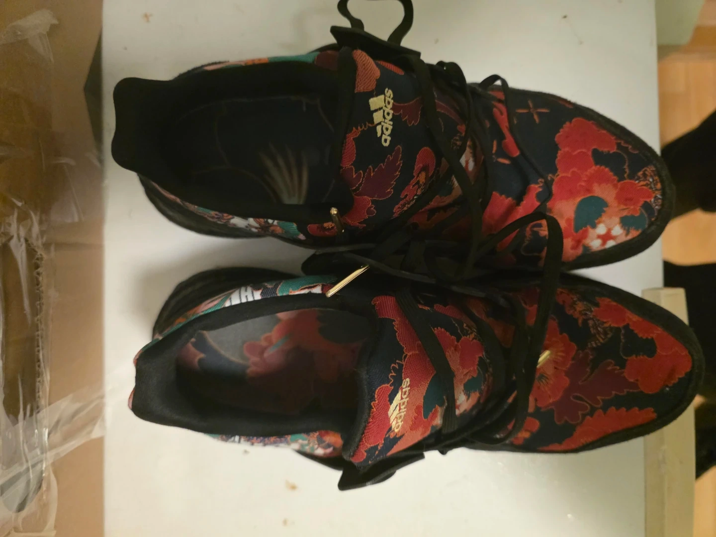 Selling a pair of Adidas Ultra Boost shoes, CHINESE YEAR size 10.5 US. They have a unique floral pattern. The soles show some wear, but still lots of life left!