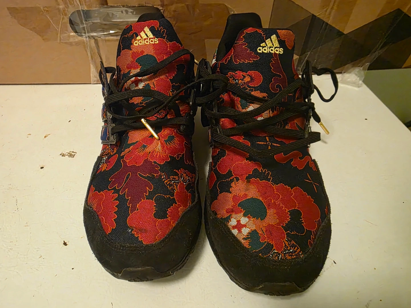 Selling a pair of Adidas Ultra Boost shoes, CHINESE YEAR size 10.5 US. They have a unique floral pattern. The soles show some wear, but still lots of life left!