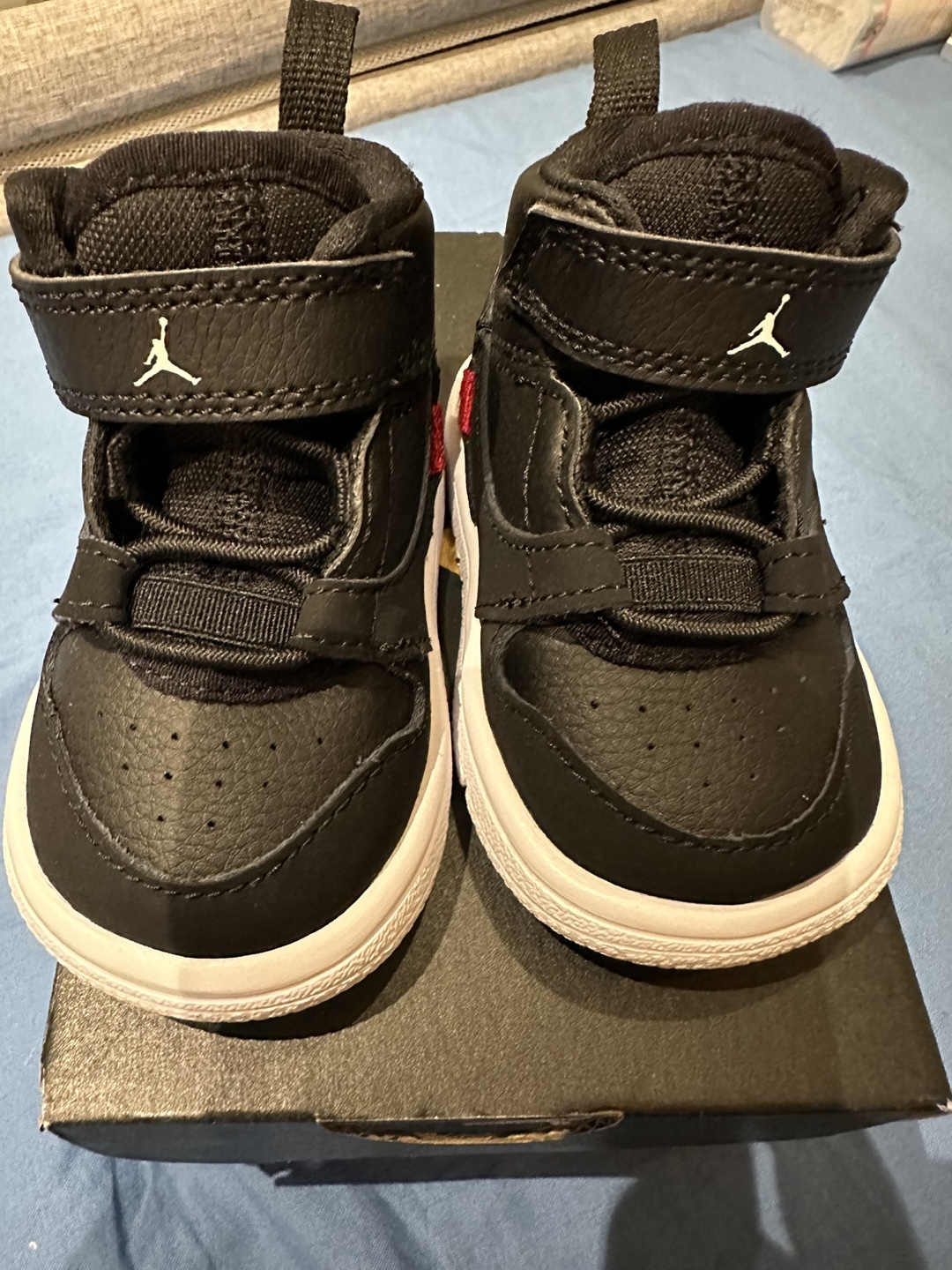 Black, white, and red toddler shoes. Velcro closure and laces. Comes in original box. Practically brand-new. Only used once for photoshoot. Pick up from Scarborough, Lawrence and McCowan.