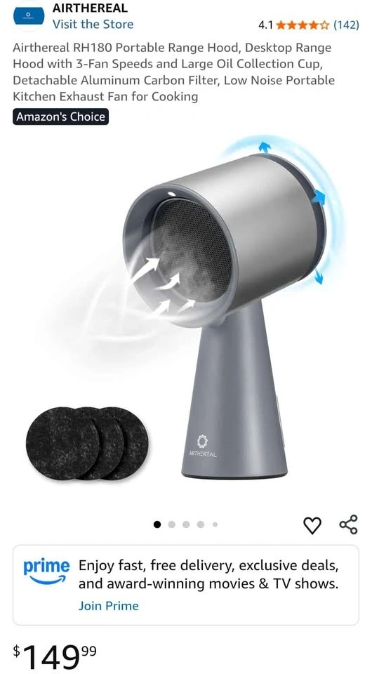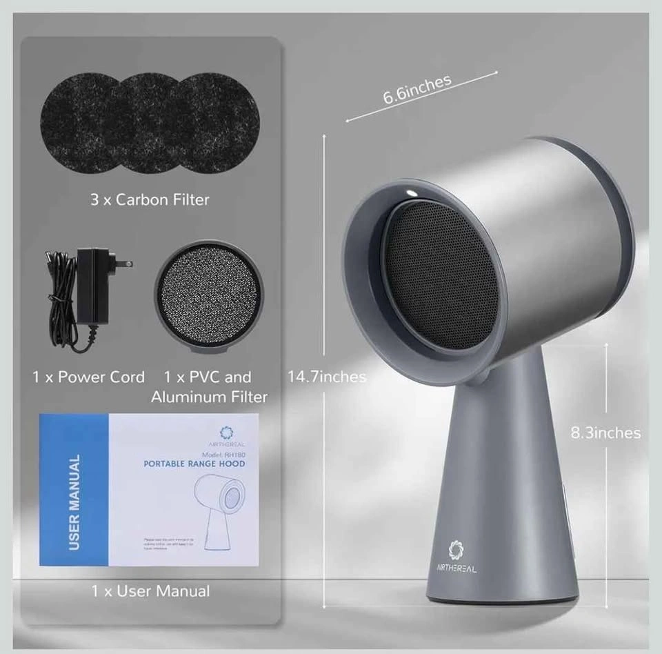 Airthereal RH180 Portable Range Hood, Desktop Range Hood with 3-Fan Speeds and Large Oil Collection Cup, Detachable Aluminum Carbon Filter, Low Noise Portable Kitchen Exhaust Fan for Cooking