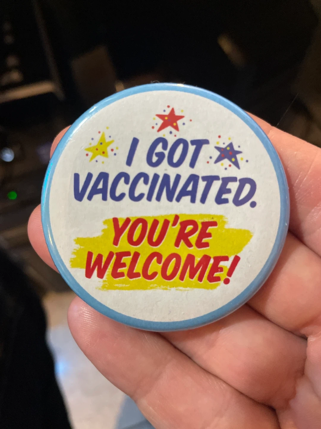 A magnet with a message about being vaccinated. A great way to share a positive message with others. A simple way to express your support for public health initiatives!