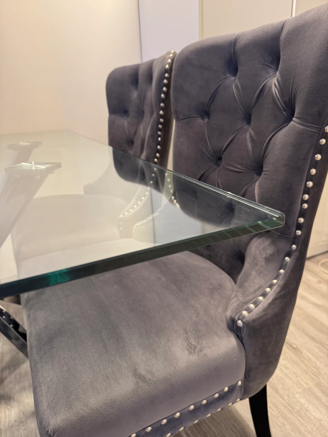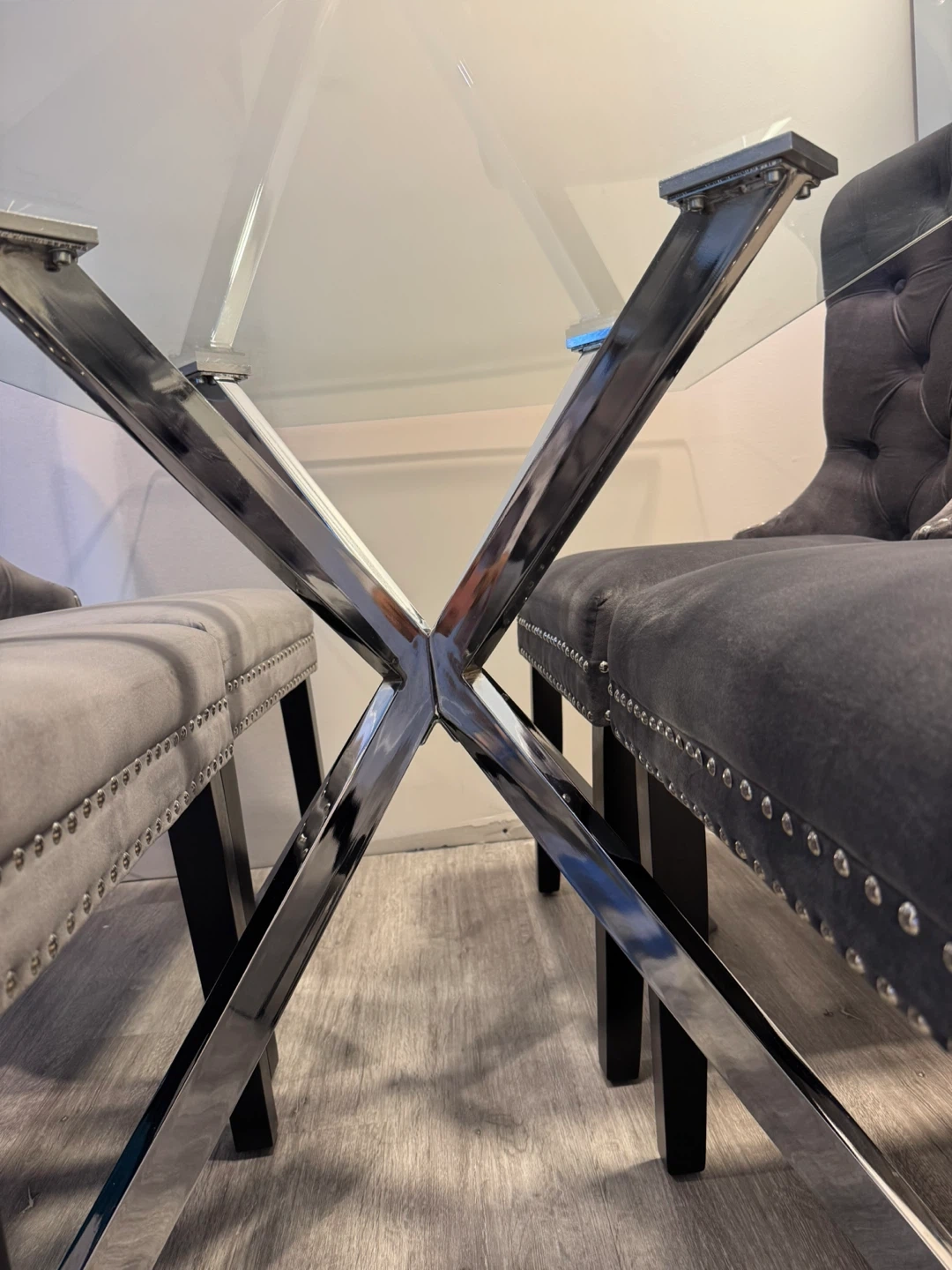 Glass Dining Table with silver legs