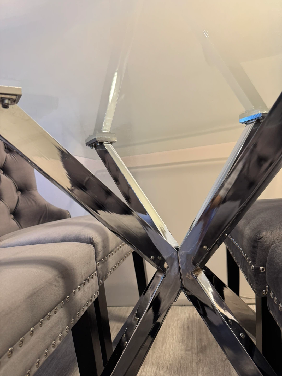 Glass Dining Table with silver legs