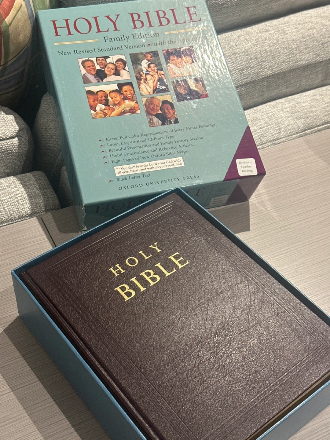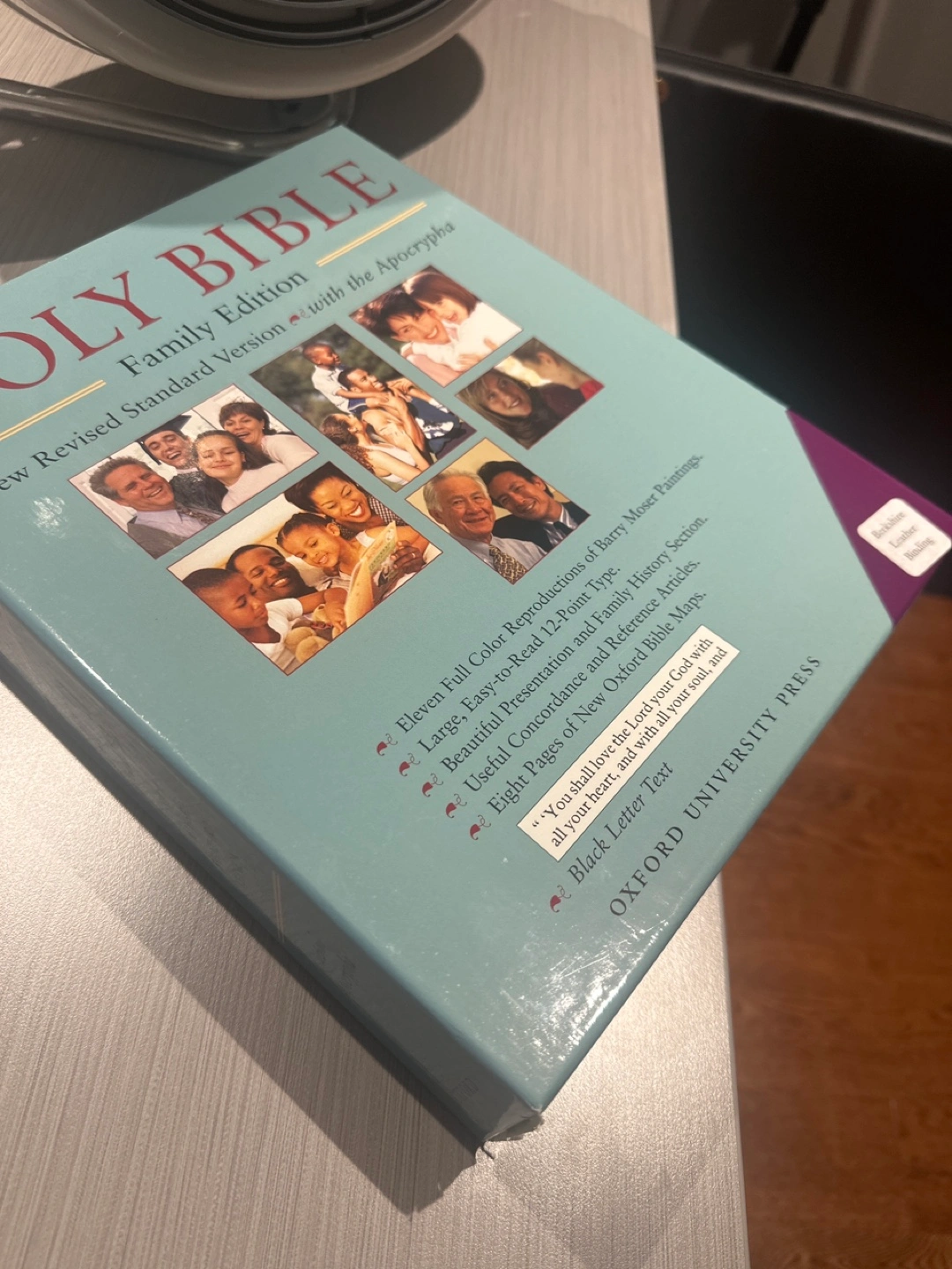 Family Edition Holy Bible. Features large font. Useful concordance and reference articles. Includes New Oxford Bible Maps.