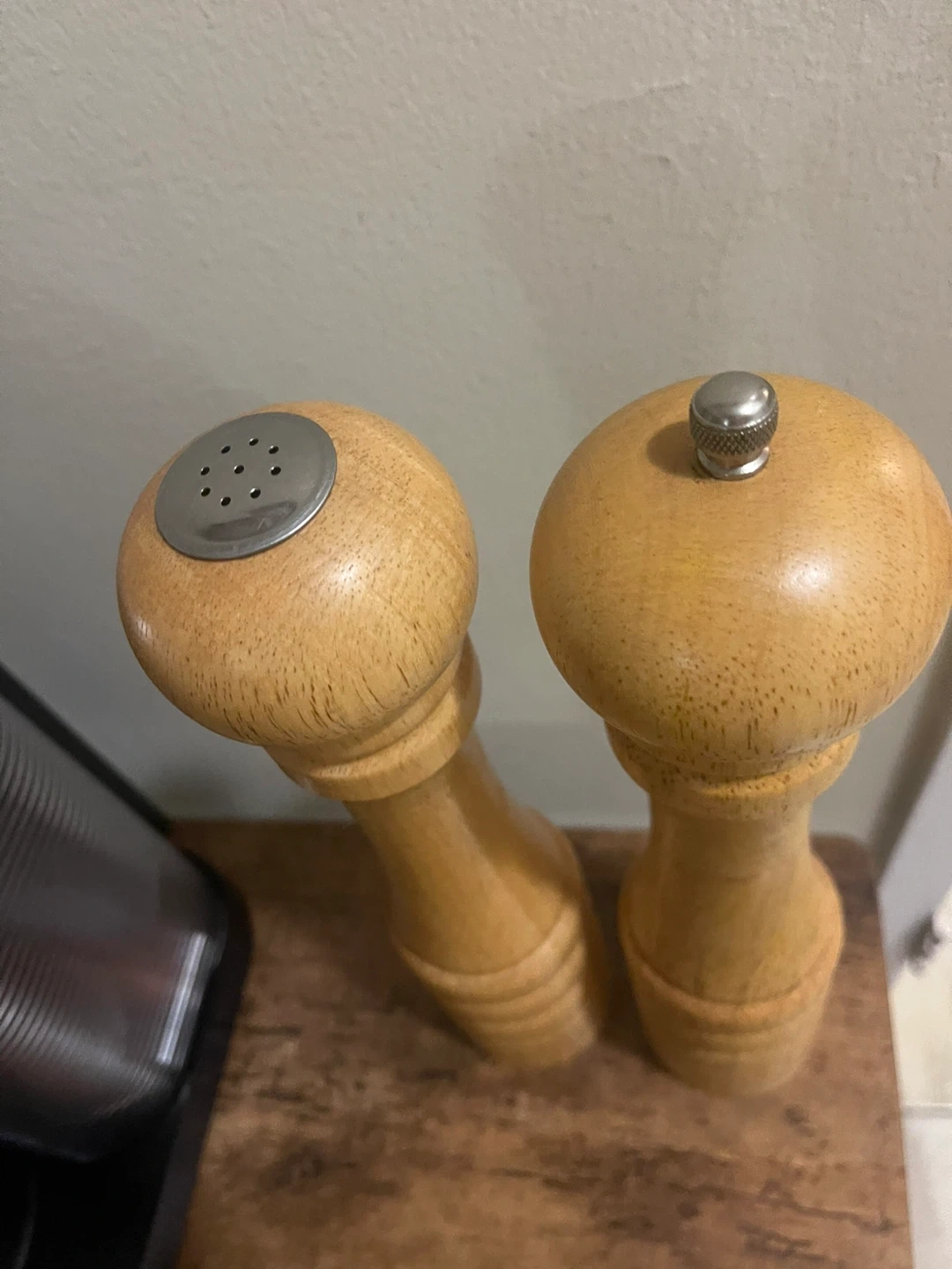 Selling a set of wooden salt and pepper grinders! They're in great shape and ready to add some charm to your kitchen or dining table. Perfect for grinding fresh salt and peppercorns for your meals