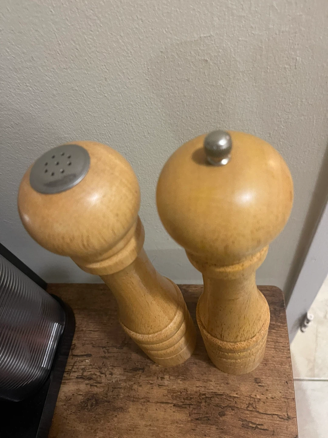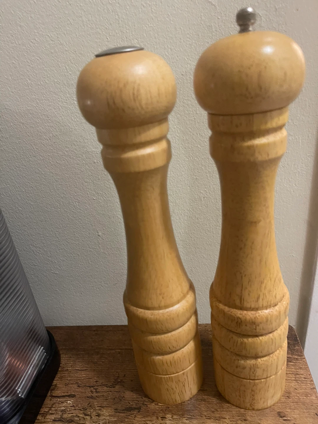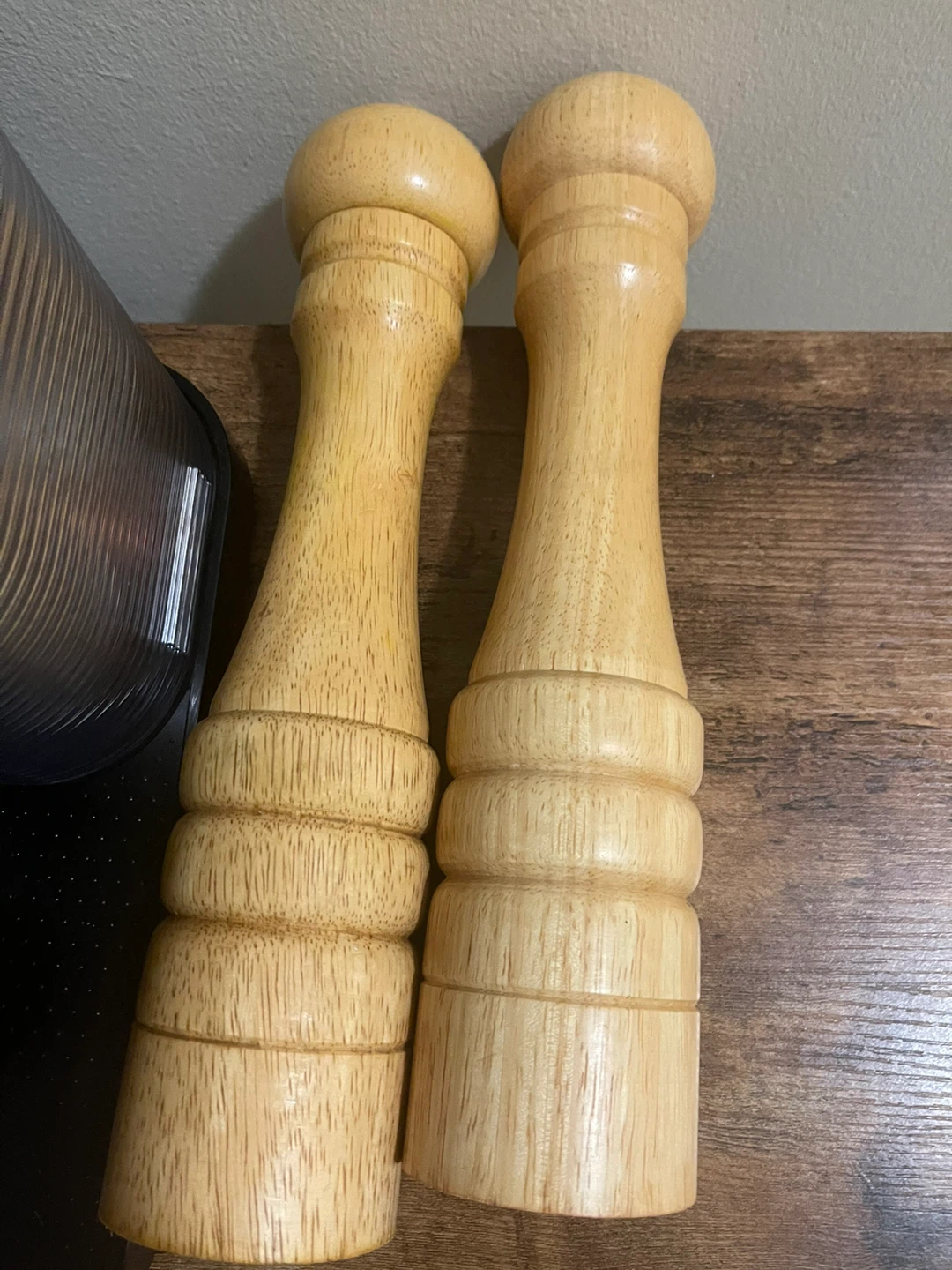 Selling a set of wooden salt and pepper grinders! They're in great shape and ready to add some charm to your kitchen or dining table. Perfect for grinding fresh salt and peppercorns for your meals