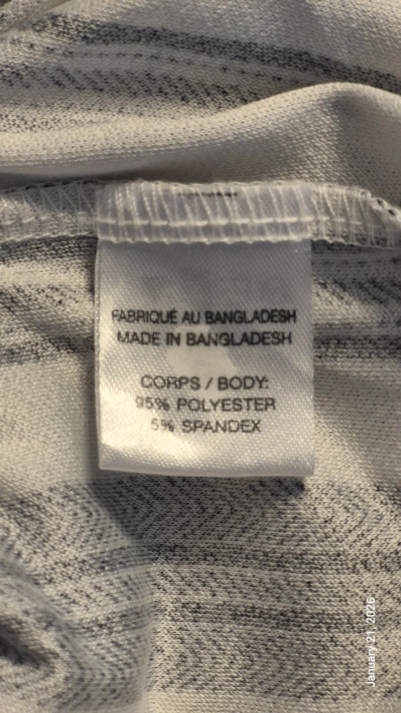 Striped sleeveless top from Lily Morgan. Made of 95% polyester and 5% spandex. Features a button-up front and a knotted hem. Manufactured in Bangladesh.