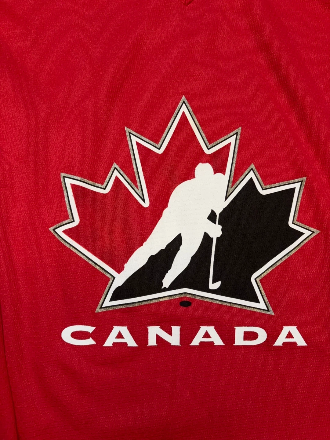Vintage Bauer Team Canada Hockey Jersey - Size L. Please note there is some dark marks inside the maple leaf as shown in photos. $20 cash, porch pick up Kennedy and Eglinton.