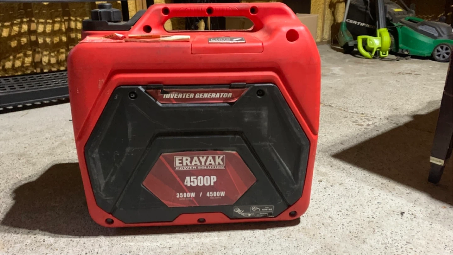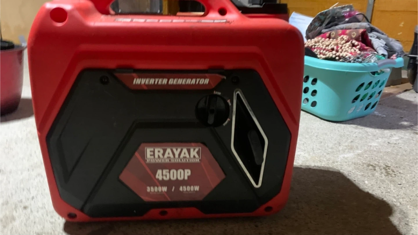 This Erayak 4500P inverter generator provides 3500W running power and 4500W peak power. It's designed for reliable power output. This unit is useful for powering tools or appliances during outages or at remote sites.