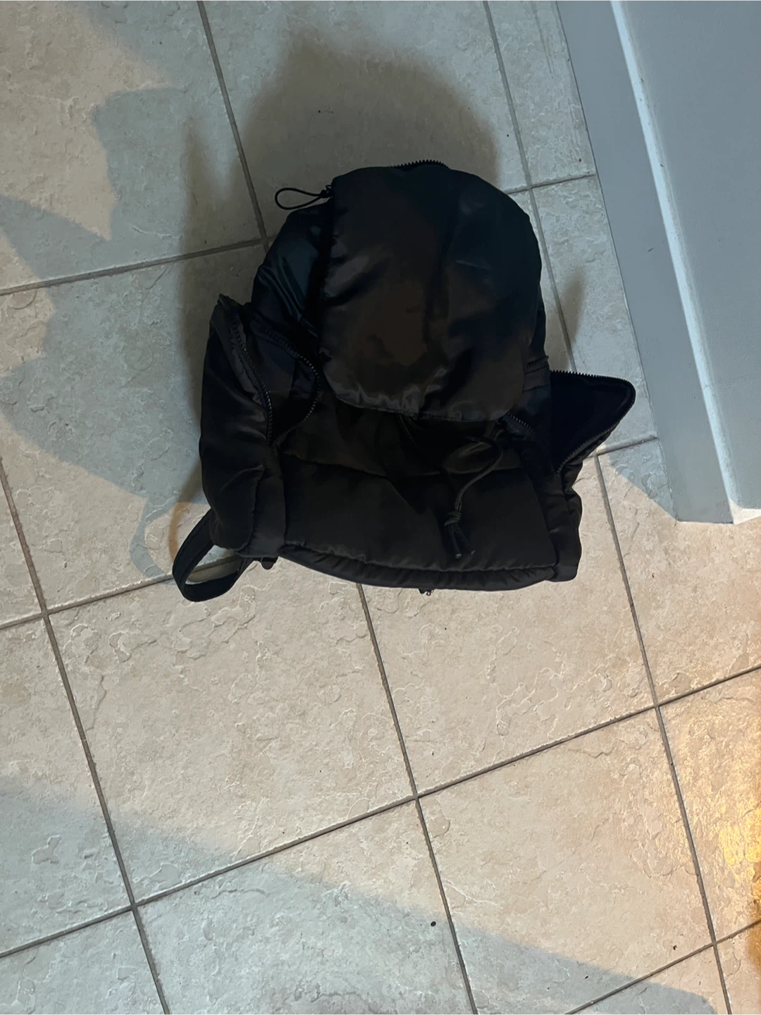 Selling a black puffer backpack from Oysho. It's in great condition and ready for a new home. The material is soft and puffy, perfect for carrying your essentials around town or on your travels!