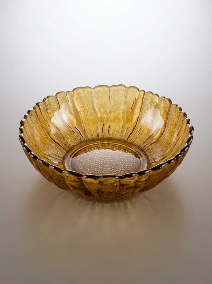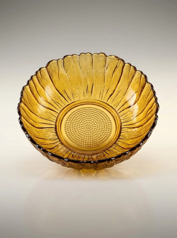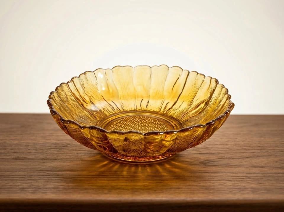 Vintage Amber Pressed Glass Bowl - Scalloped Edge