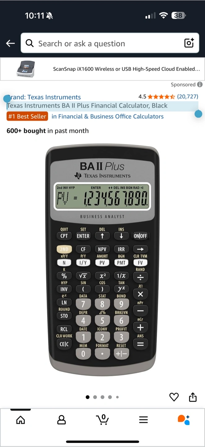 Selling a Texas Instruments BA II Plus Financial Calculator! It's a business analyst calculator that's a #1 Best Seller in Financial & Business Office Calculators. Great for students or professionals!
