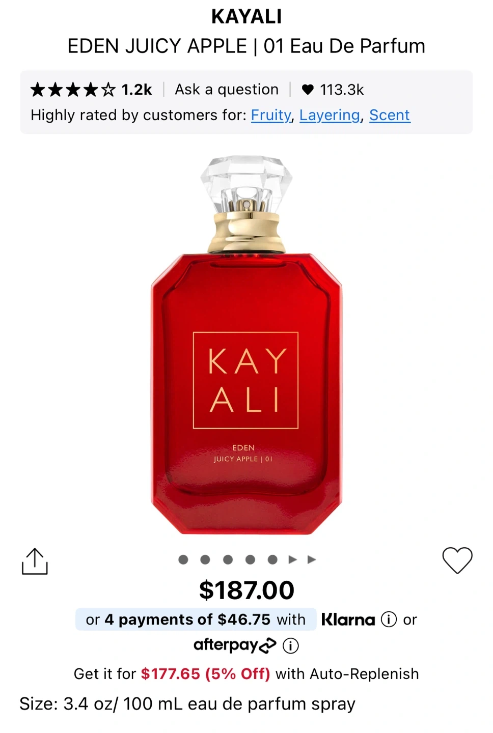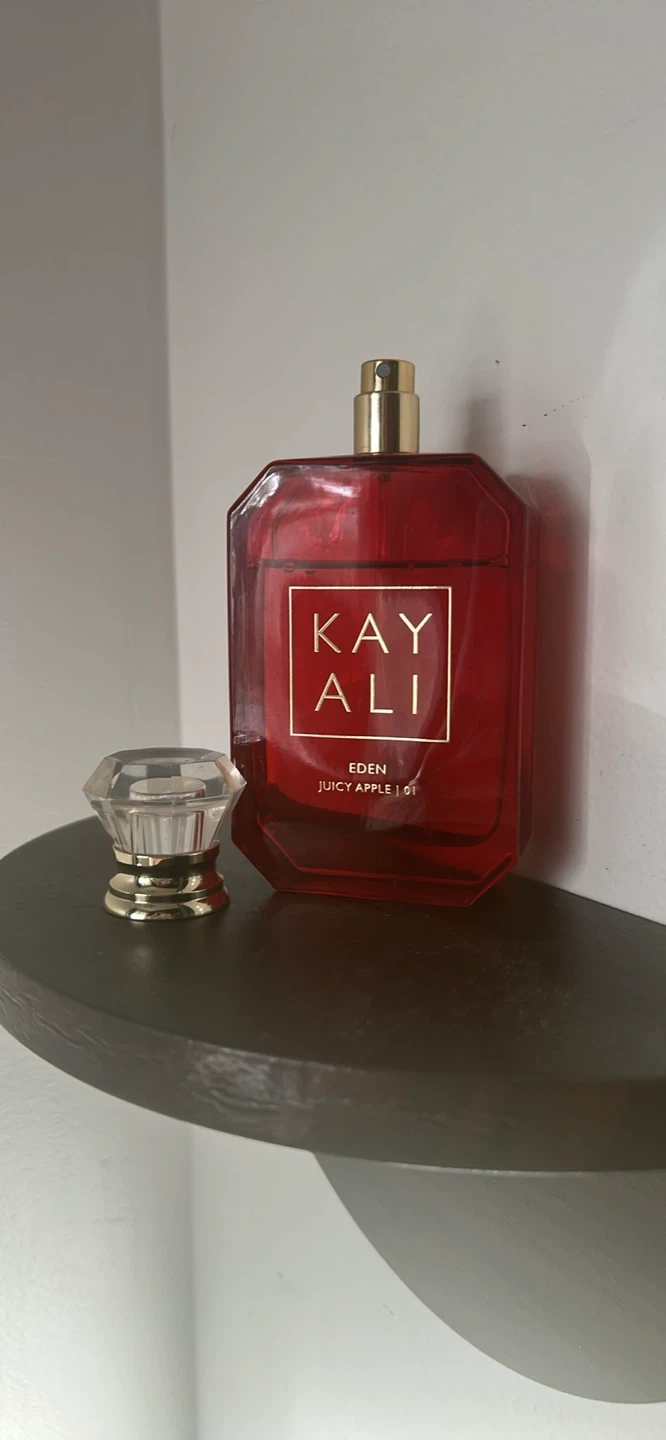 This is Kayali Eden Juicy Apple | 01 Eau de Parfum. It's a 100ml bottle. Made in France. About 1/3 used, it smells divine but I don’t reach for it.