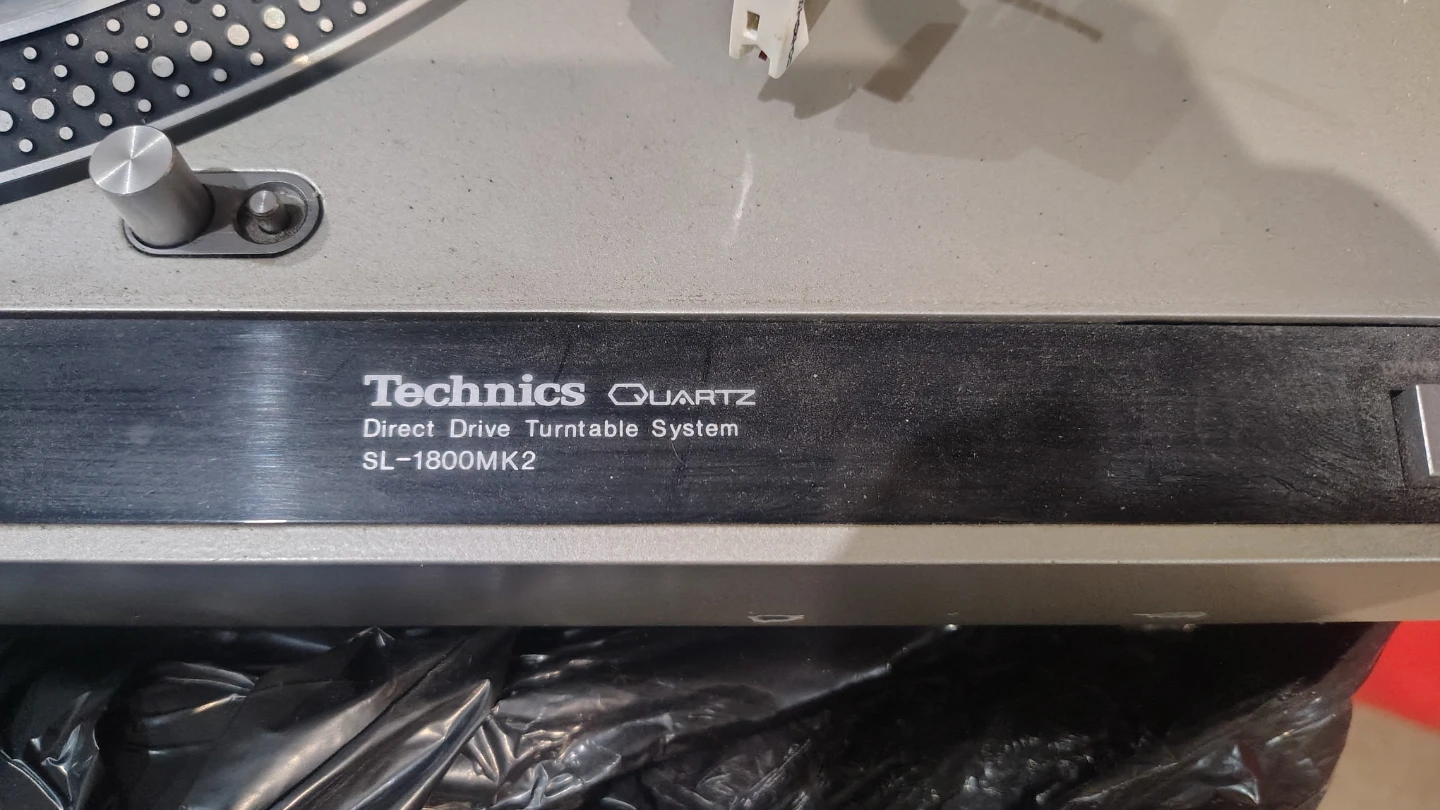 This is a Technics SL-1800MK2 direct drive turntable system. It features quartz lock for stable speed control. The tonearm is present and appears functional.