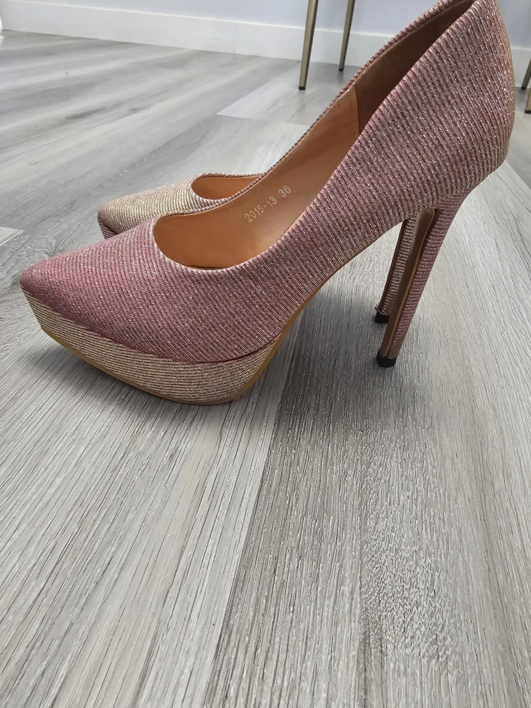 Selling a pair of stylish pink glitter heels from Ket Importa! They're a size 6 and would be perfect for a night out or a special occasion. They show some signs of gentle use but are still in great condition! Heels -5 inch