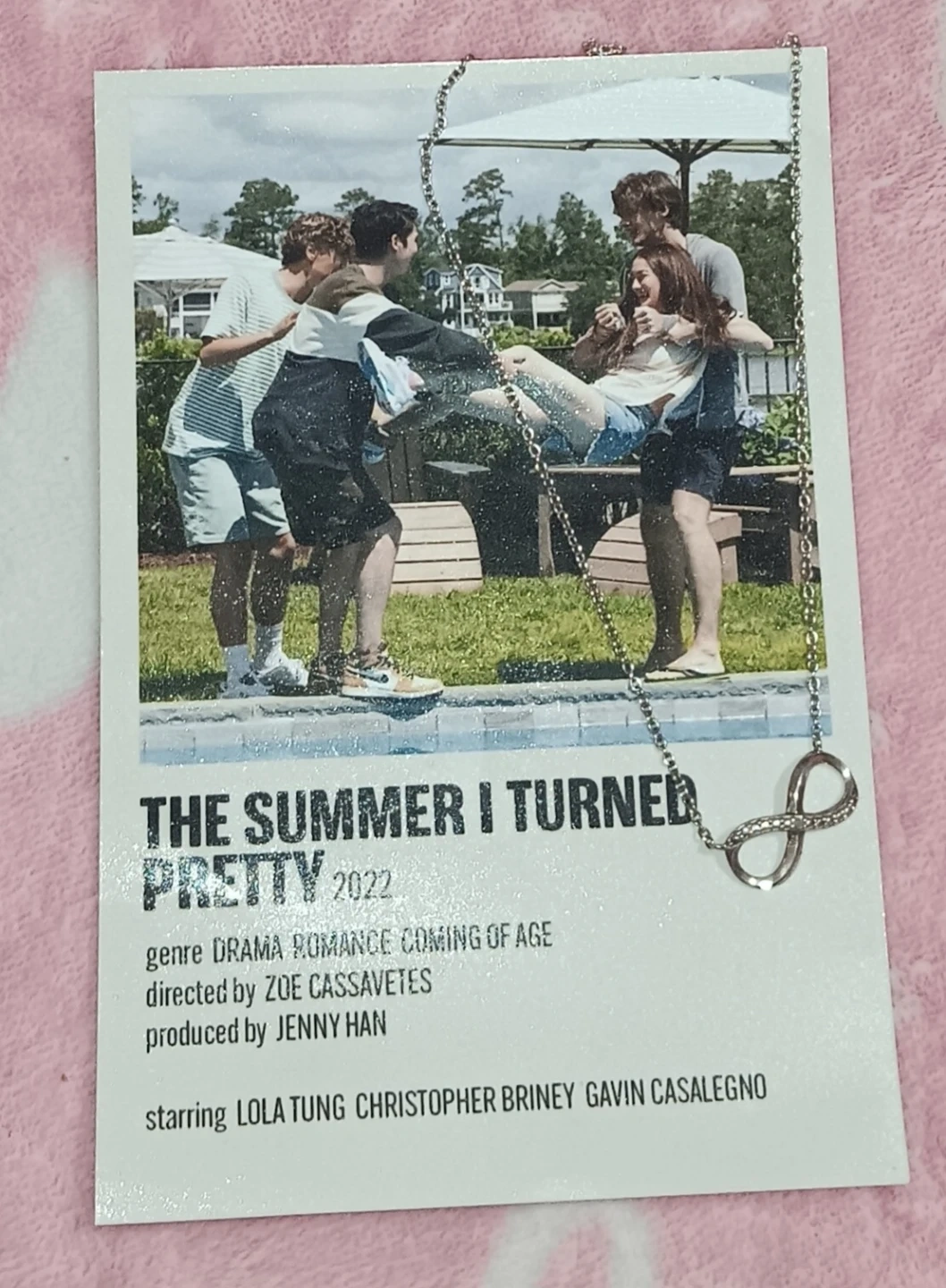 Belly's Infinity Necklace + Bonus Poster Card Bundle. Perfect for any Team Conrad lover and/or fan of The Summer I Turned Pretty! Includes the iconic Infinity necklace (silver-toned) and a high-quality TSITP minimalist poster card. Great condition. Just a little clear tape on the necklace, barely noticeable. See in attached pictures. Cash only :)
