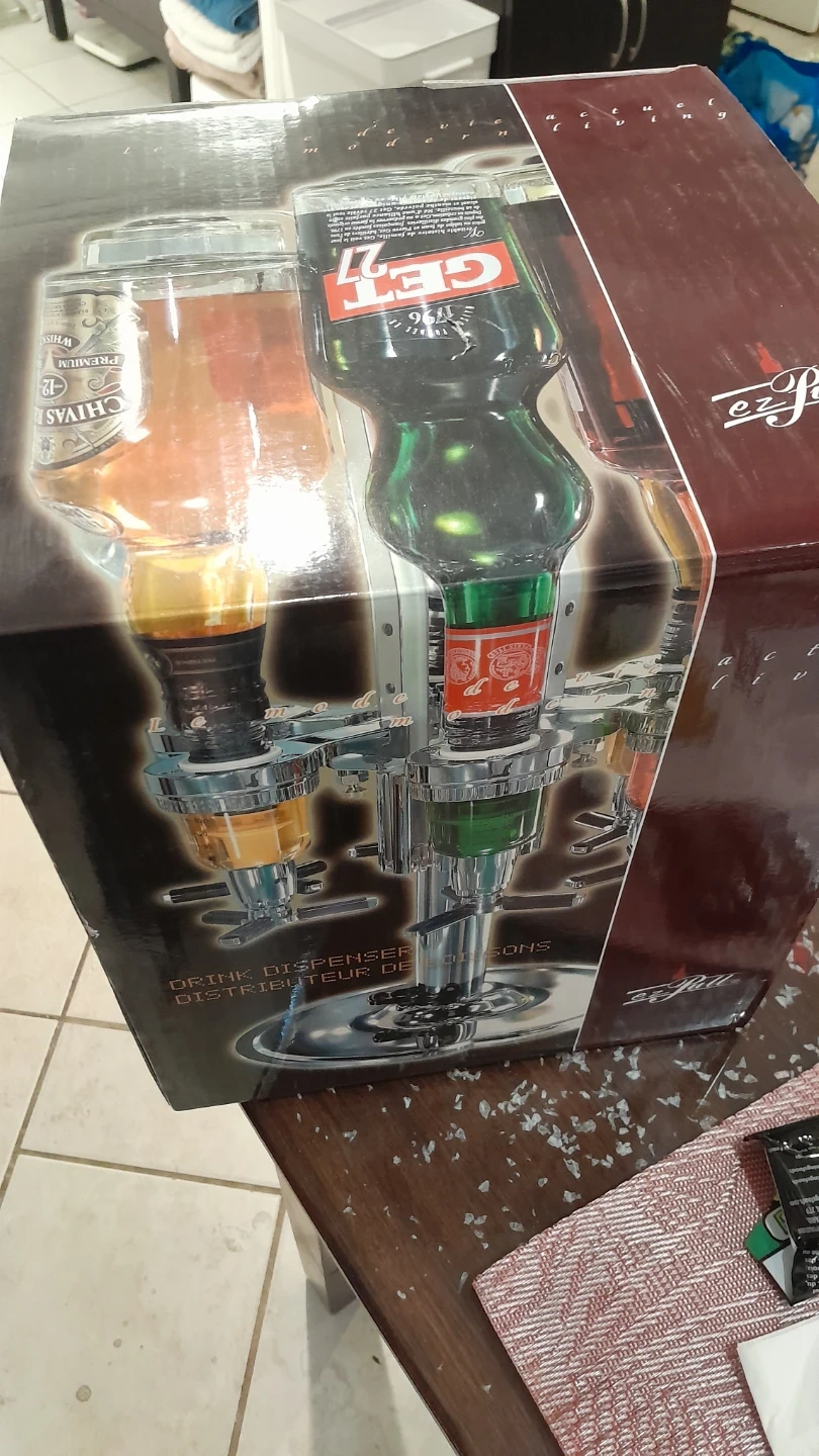 This is a nearly brand new liquor dispenser. You can place up to 6 bottles of any kind of liquor without a problem. Instructions are inside the box.