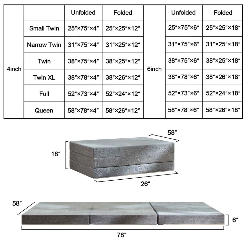 Twolike Queen Size Tri-Fold Mattress