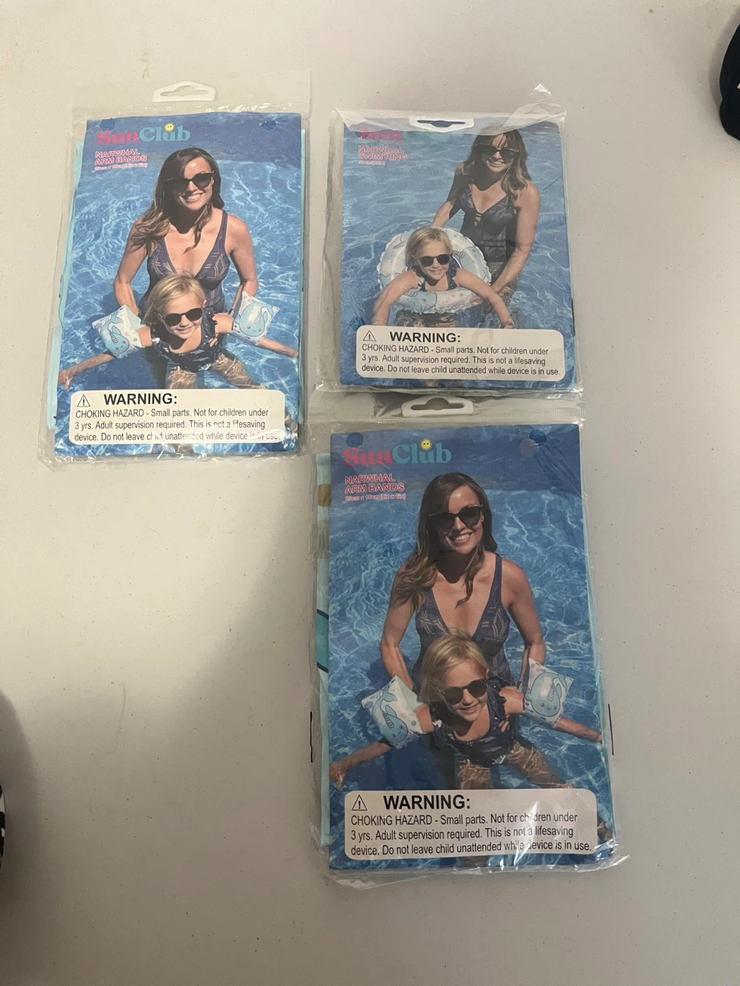 This set includes Sun Club Narwhal Arm Bands and a matching swim ring. It's designed for water fun and supervision is required. Adult supervision is a must while using this device.