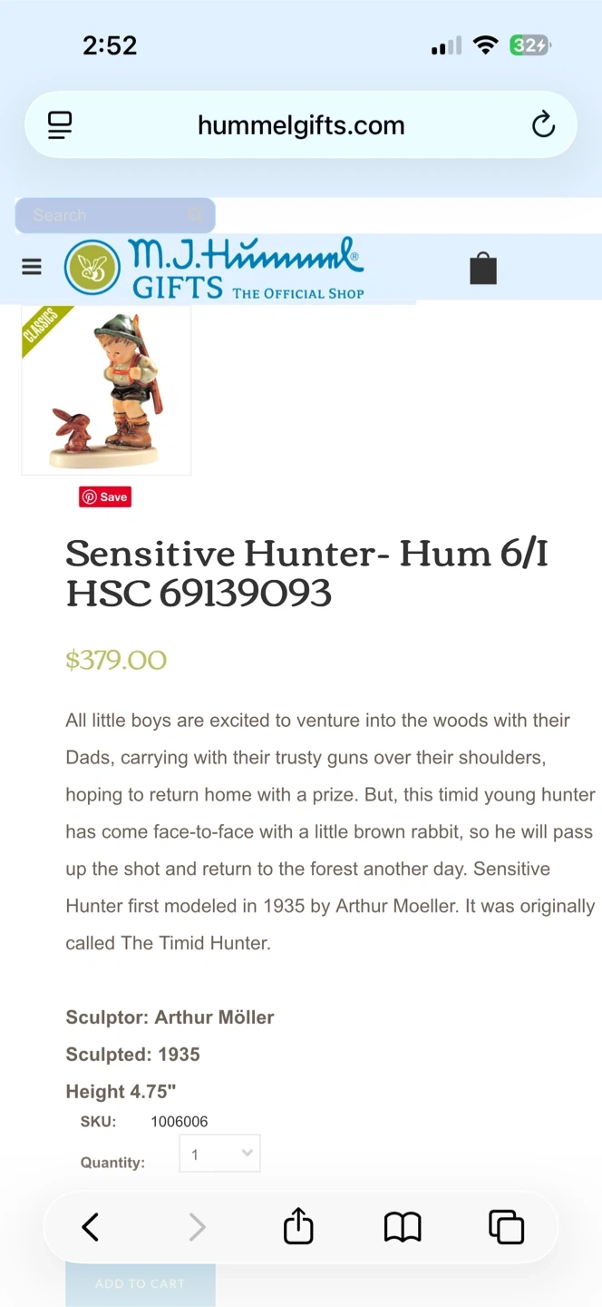 Selling a Hummel figurine called Sensitive Hunter, also known as The Timid Hunter! This figurine has some variations on the rabbit and suspenders of the boy, this one is circa 1950’s. Many sell for over $330+. There is a small mark on the rabbits ear, but otherwise is great shape! Pick up Haysboro SW.