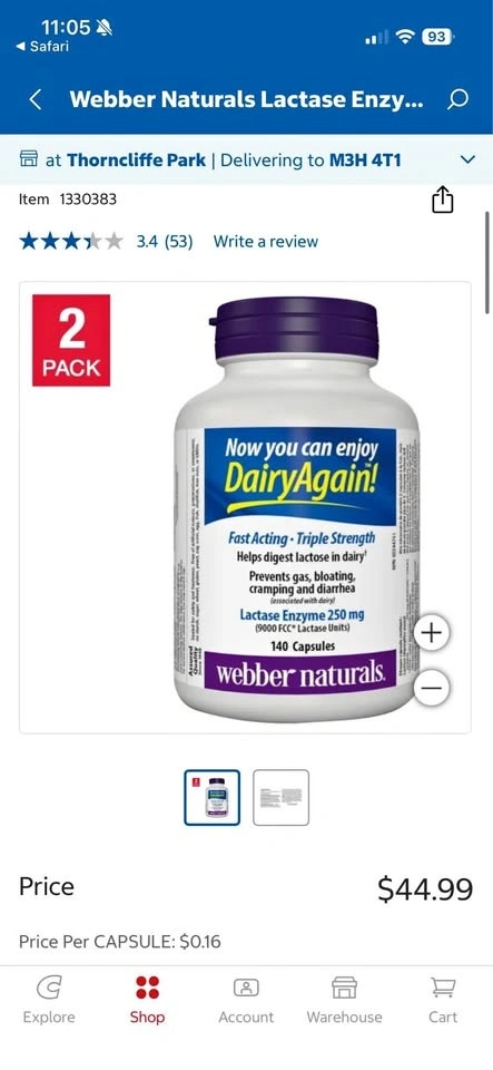 Buy & SellWebber’s Natural Lactase EnzymeWebber’s Natural Lactase Enzyme$20New. Sealed. Purchased from Costco a few months ago. 1 bottle with 140 tablets. Pick up near Bay and College.WHERE TO MEETCheck LocationView MapSELLERNatashaBay Street Corridor362 reviews0 chats·2 favorites·11 viewsSEND CHAT TO SELLERHi Natasha! I’m interested in your listing.Hi Natasha! I’m interested in your listing.Get the Karrot app to chatSign In to chat