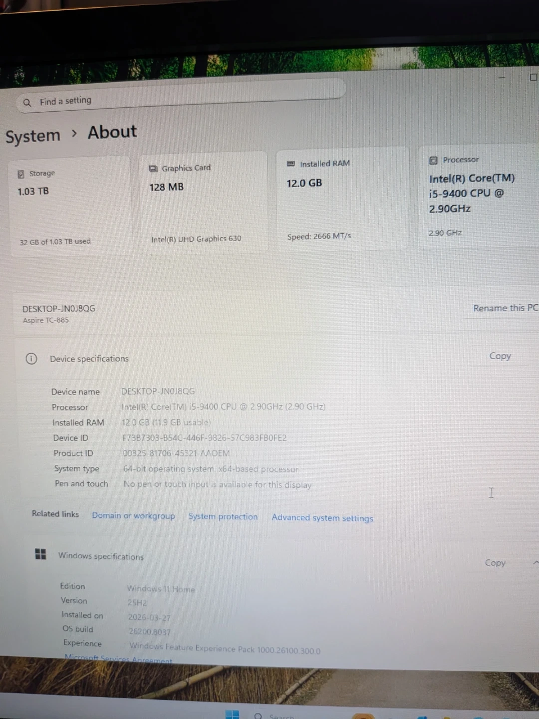Acer i5 9th gen Desktop PC with monitor, SSD, Wifi