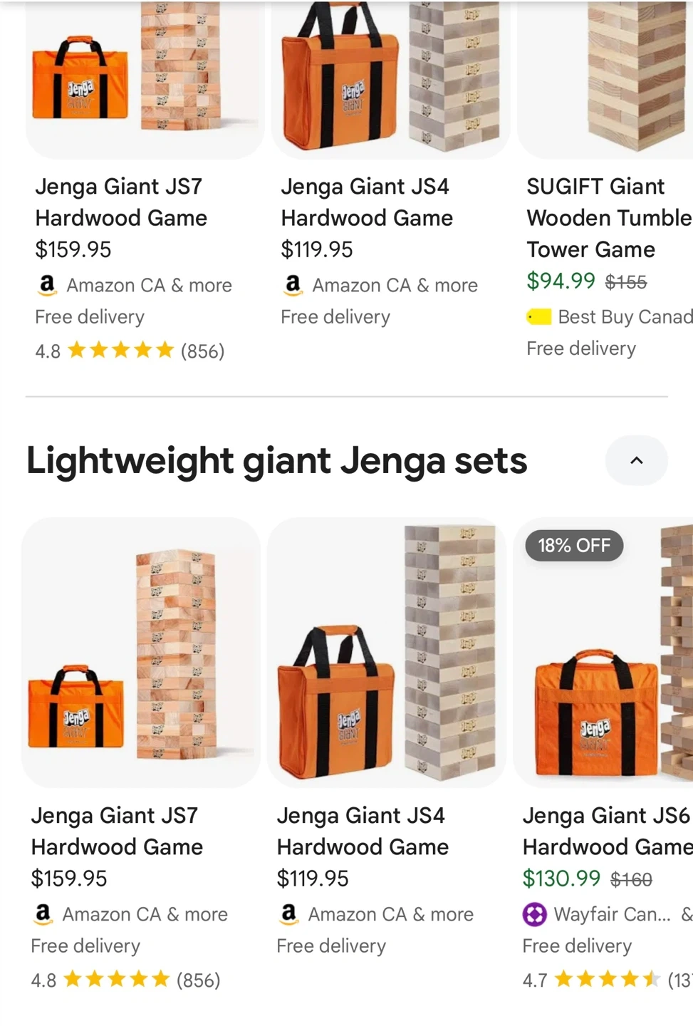 Selling a Jenga Giant JS7 hardwood game! It comes with a heavy-duty carry bag for easy transport. This game stacks to over 5 feet. Originally bought for $159.95