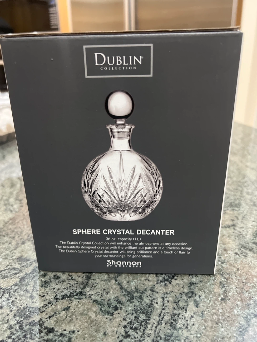Selling a beautiful Sphere Crystal Decanter from the Dublin Collection! It's in excellent condition and comes with the box. This decanter has a 36 oz capacity (1 L) and features a timeless design that will bring brilliance and a touch of flair to your gatherings for generations