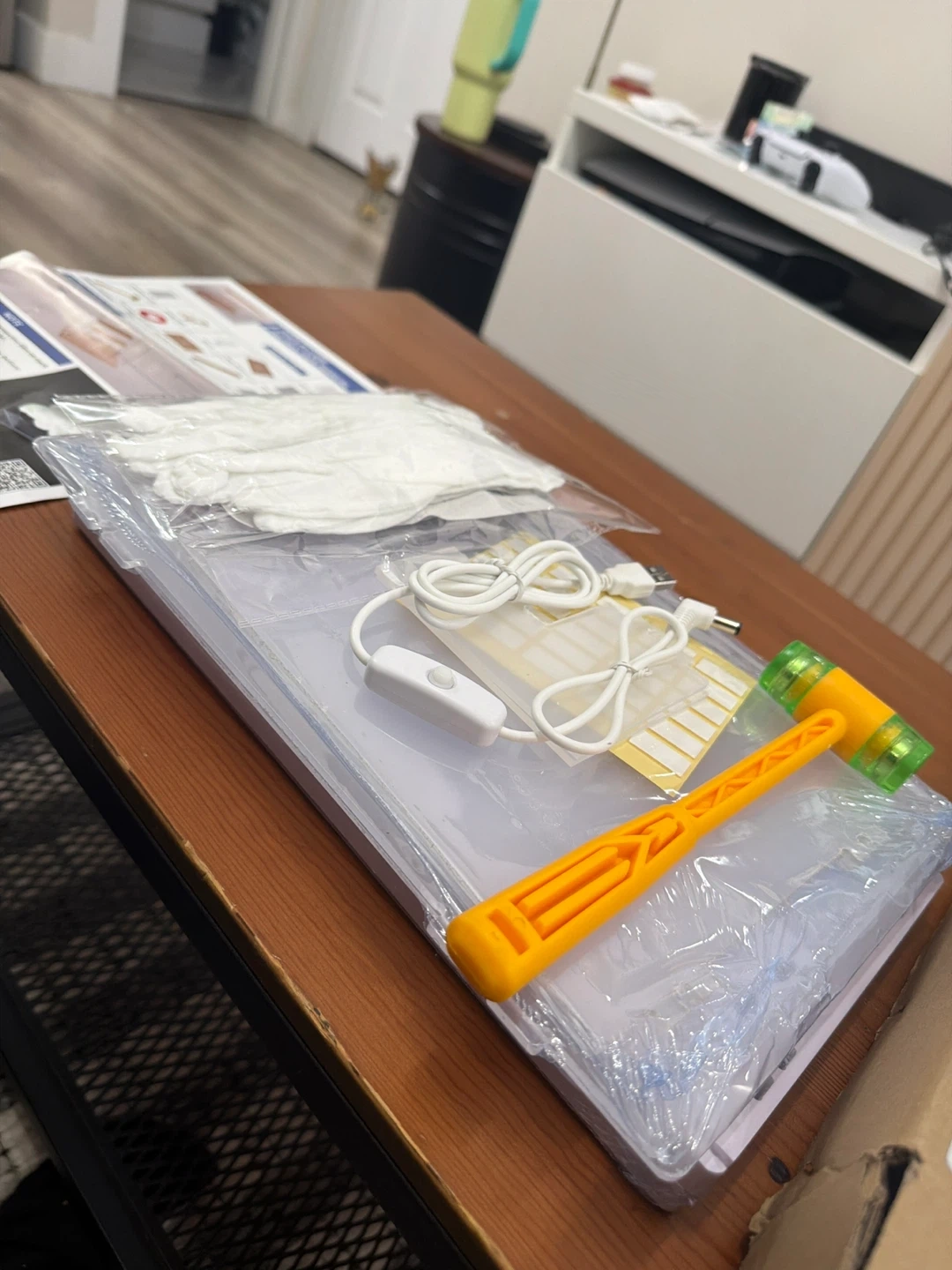 Selling a Nynelly Acrylic Lighted Display Case for Collectibles. It's a 4 Tier Figure Display Box with Door and Steps. Assemble Dustproof LED Showcase Storage Box for Mini Figures, Funko Pop, Toys, White. Includes gloves, cleaning cloth, rubber hammer, string light, and installation tape