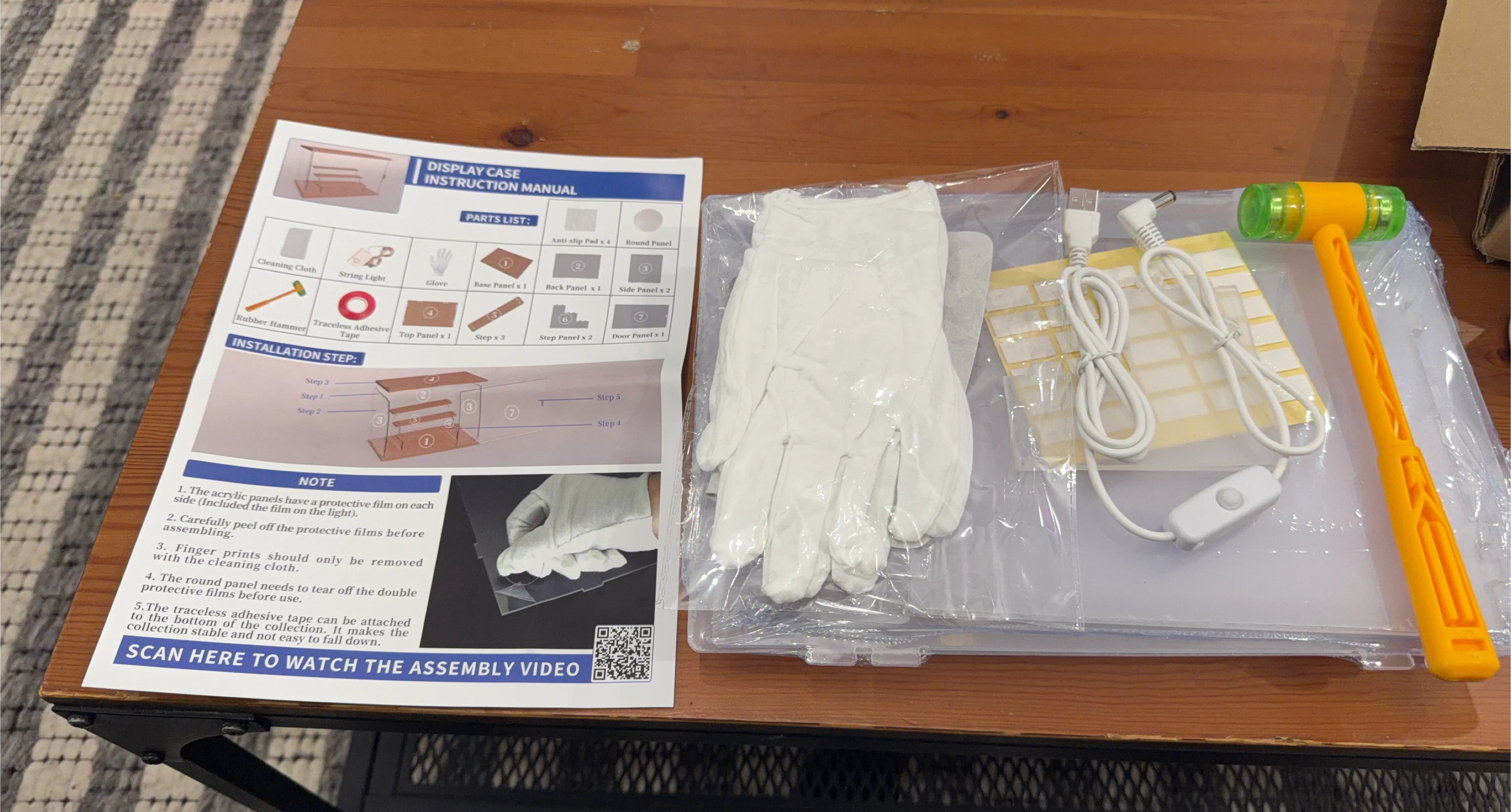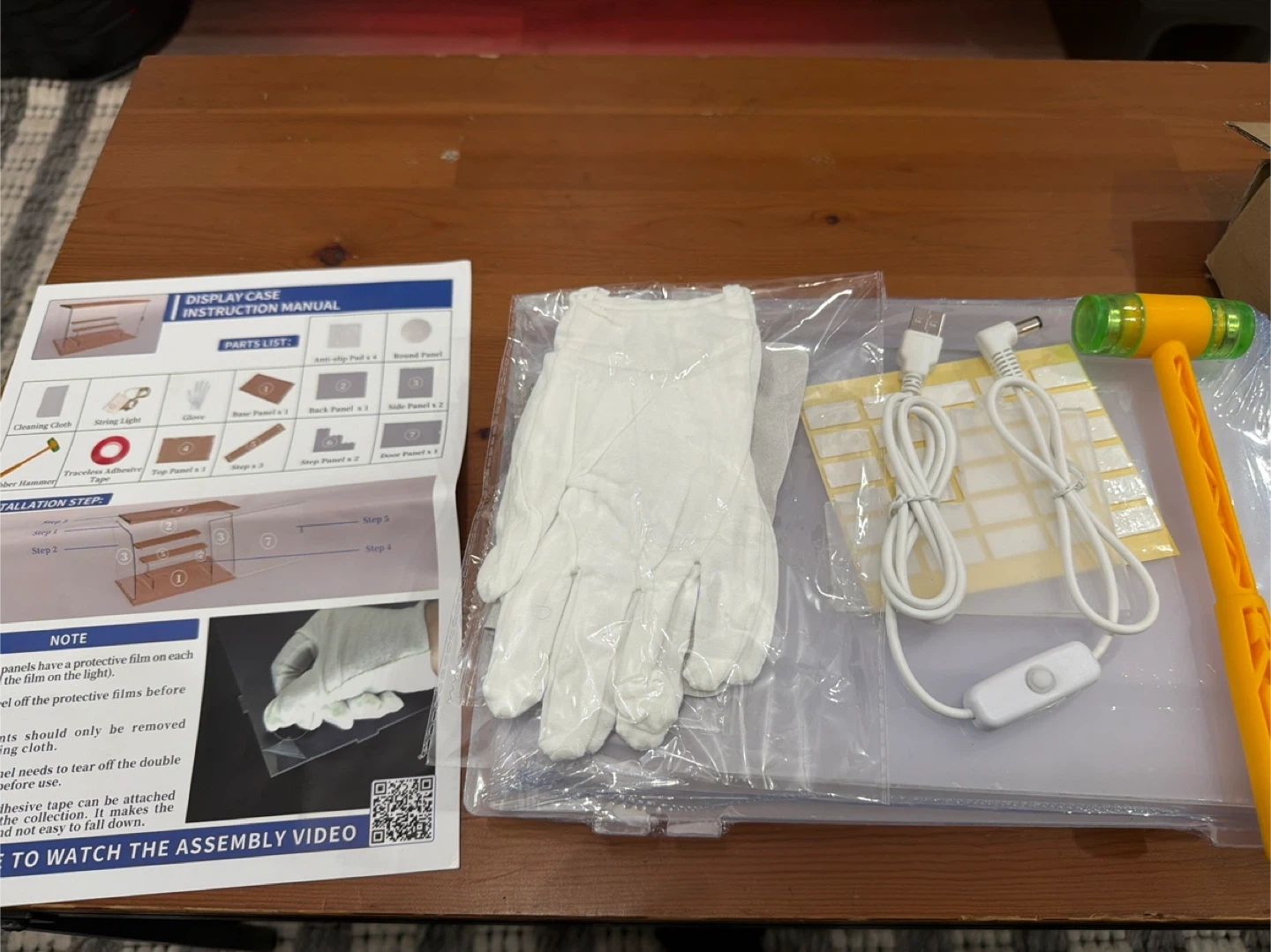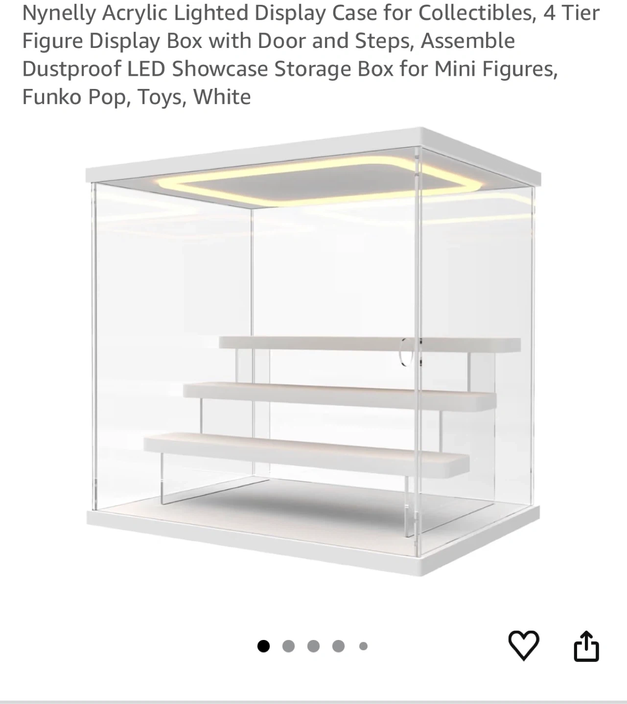 Selling a Nynelly Acrylic Lighted Display Case for Collectibles. It's a 4 Tier Figure Display Box with Door and Steps. Assemble Dustproof LED Showcase Storage Box for Mini Figures, Funko Pop, Toys, White. Includes gloves, cleaning cloth, rubber hammer, string light, and installation tape