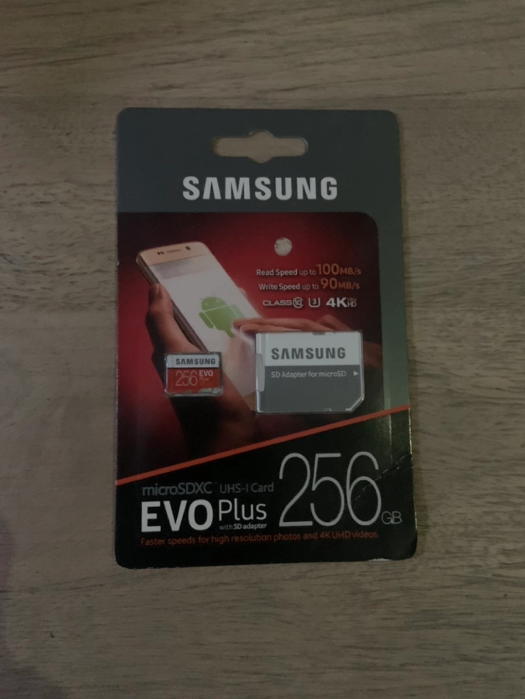 256GB microSDXC UHS-I card. EVO Plus. Includes SD adapter. Faster speeds for high-resolution photos and 4K UHD videos.