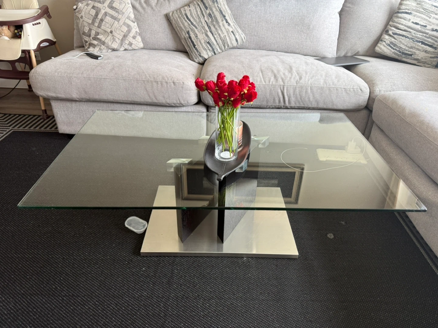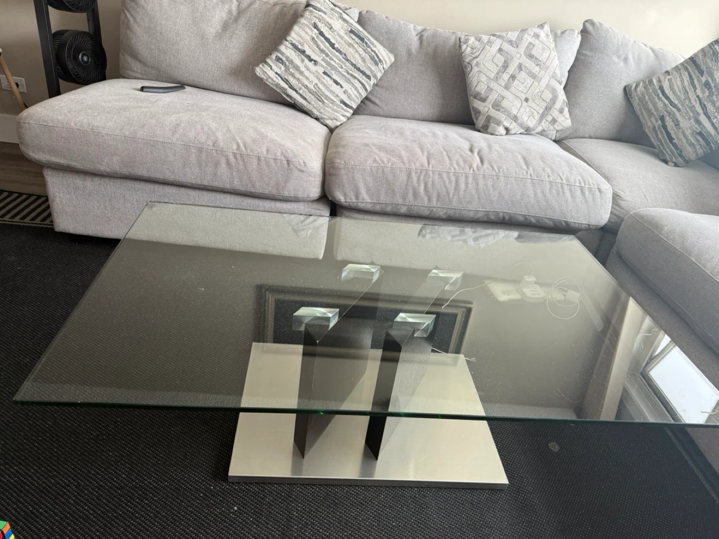 Glass Coffee Table with Metal Base