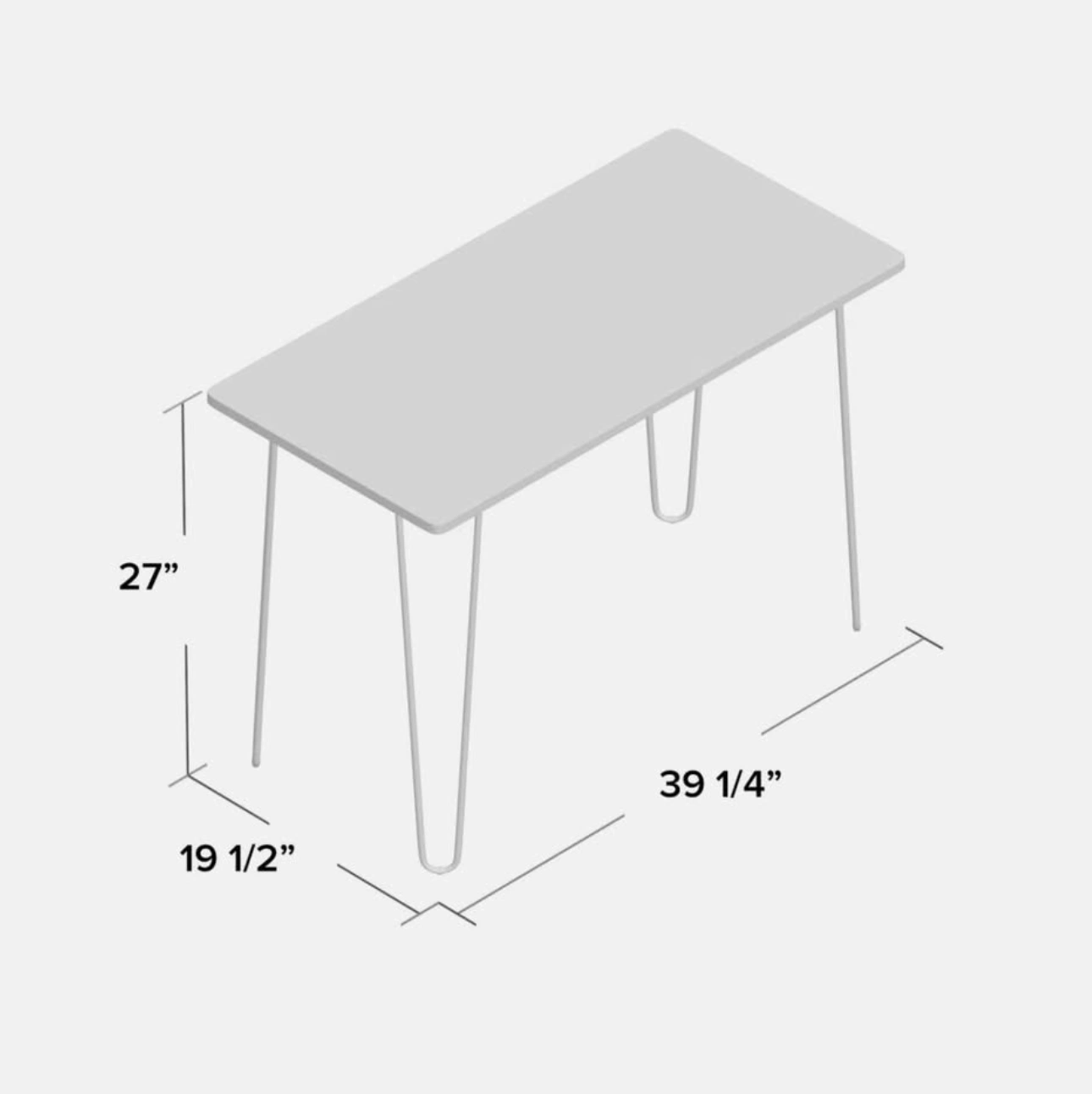 Dimensions: 39.25" L × 19.5" W × 27" H.