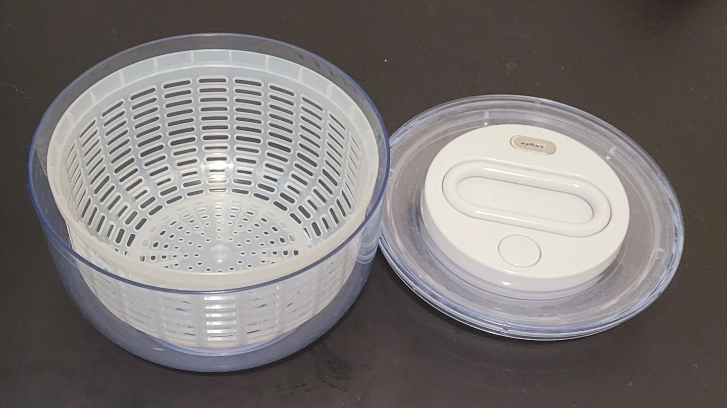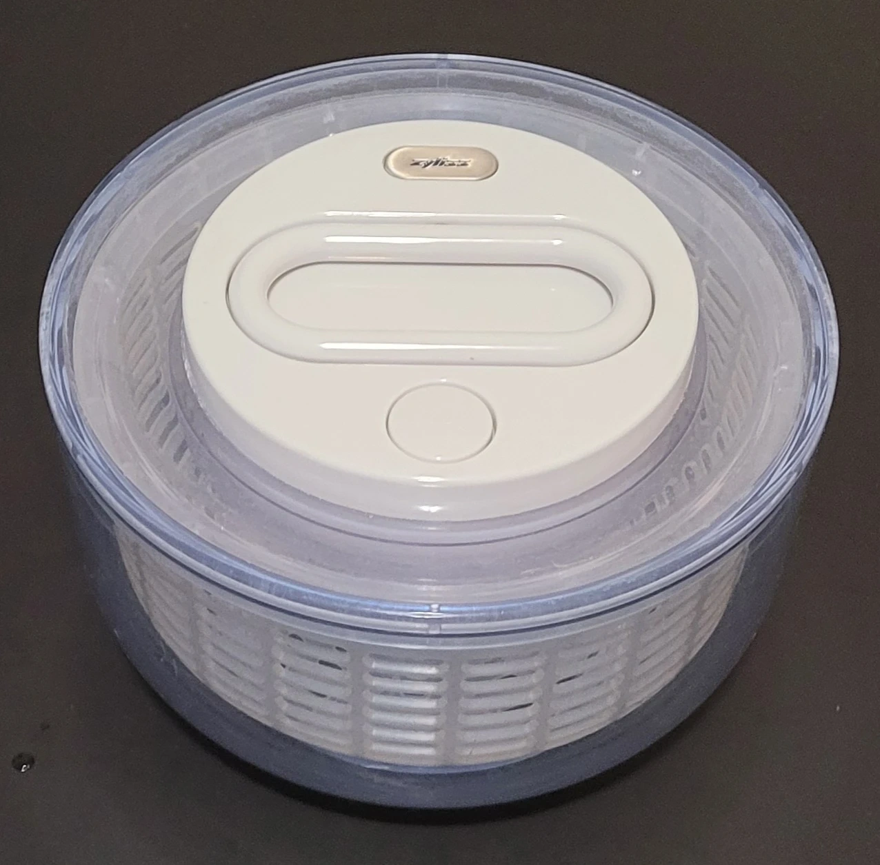 This Zyliss salad spinner makes drying greens a breeze. It features a non-slip base and a brake button for stopping the spin. It's perfect for quickly preparing fresh salads.
