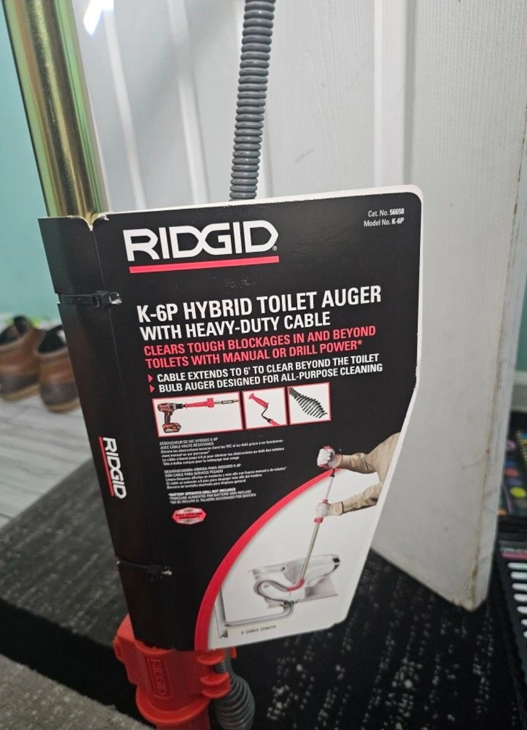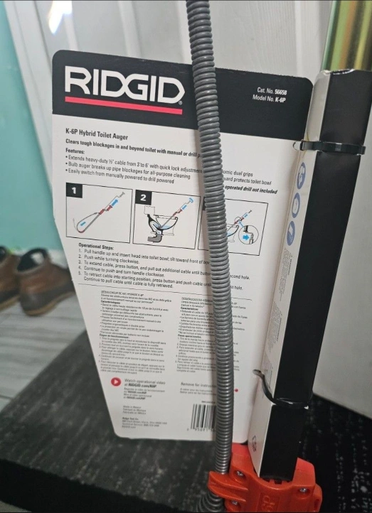 Selling a RIDGID K-6P Hybrid Toilet Auger. This tool is designed to clear tough blockages in and beyond the toilet.