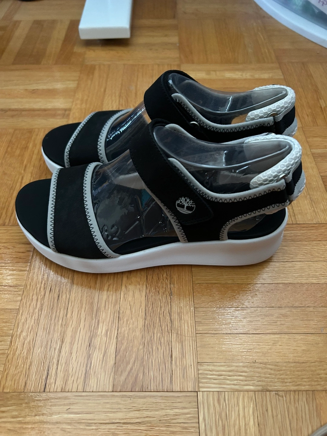 These Timberland women's sandals are in great condition! They are a size 7/8 and feature a stylish black design, perfect for everyday wear. The sandals are comfortable and durable, ready for your next adventure