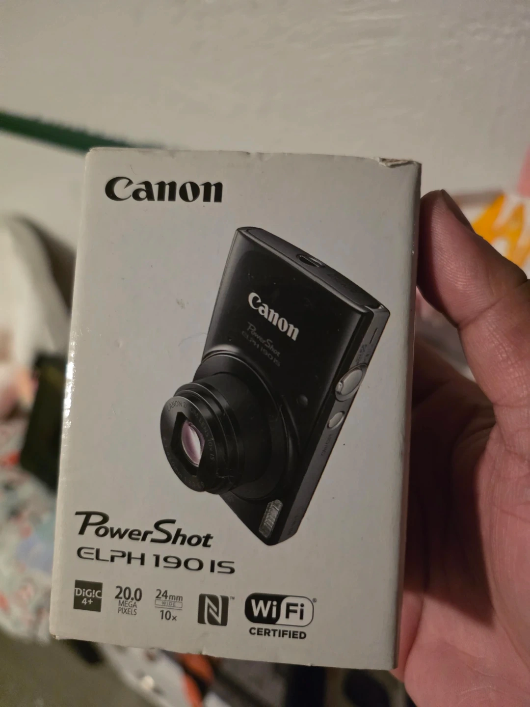 This is a Canon PowerShot ELPH 190 IS digital camera. It features 20.0 megapixels and 10x optical zoom. It's also Wi-Fi certified.