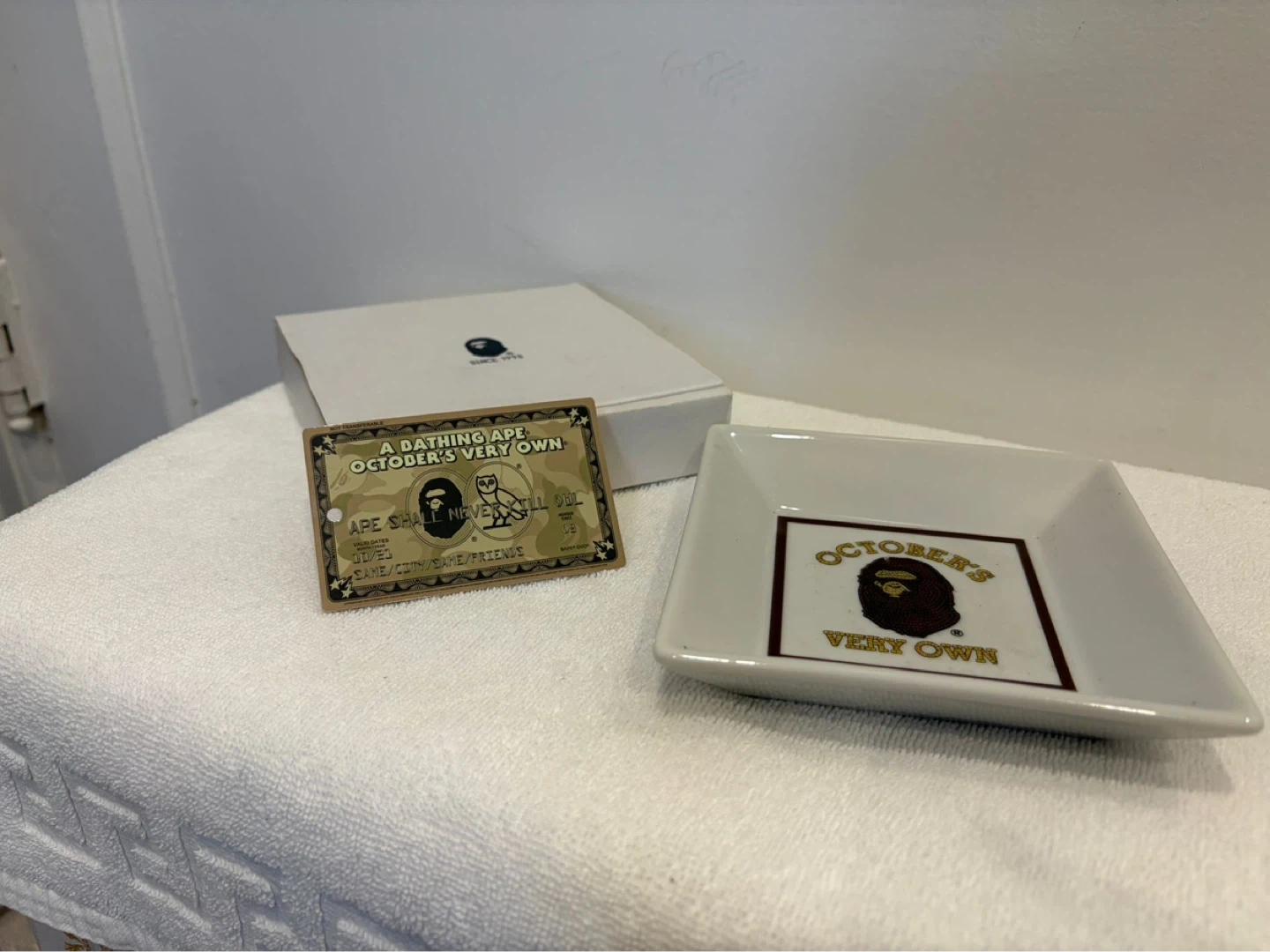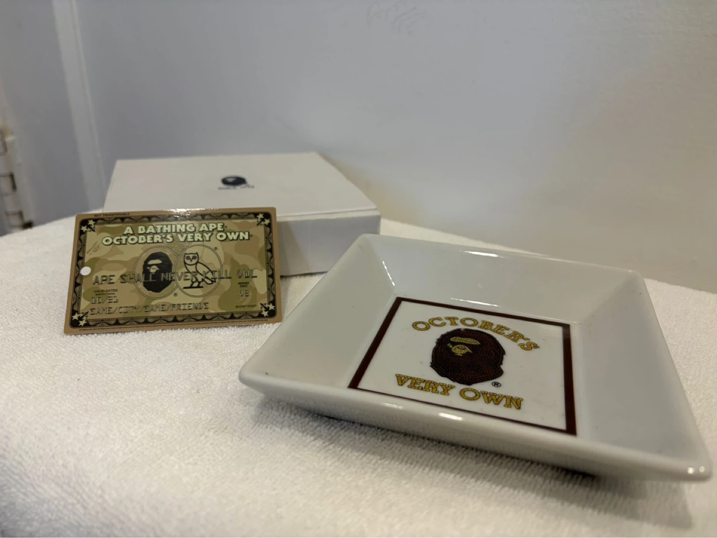 This is a ceramic dish featuring the October's Very Own branding. It comes with its original box. The dish is white and displays the OVO owl logo. It's suitable for small trinkets or as a decorative item.