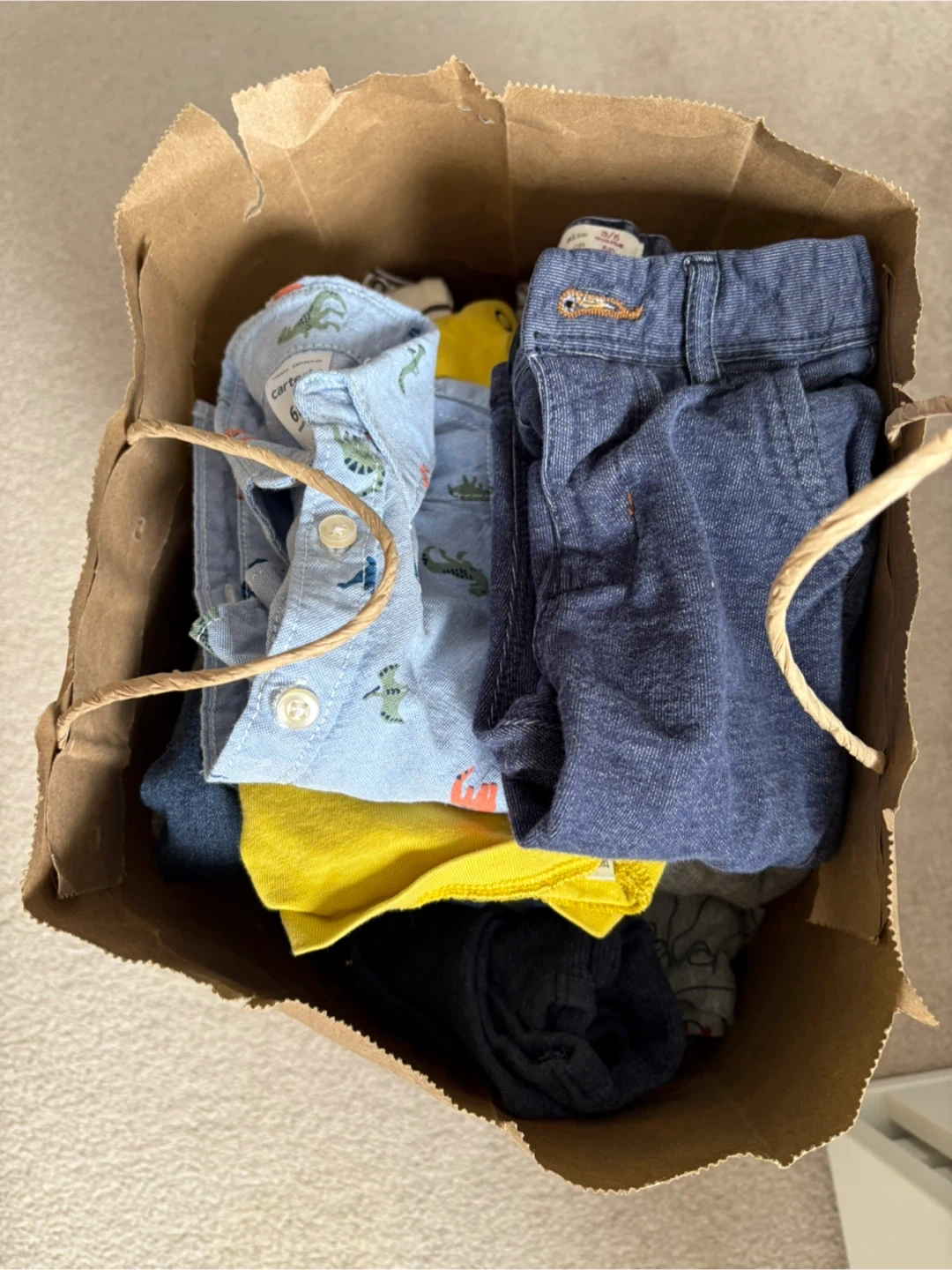 Carters, Disney, Levi’s, baby gap and no brands.