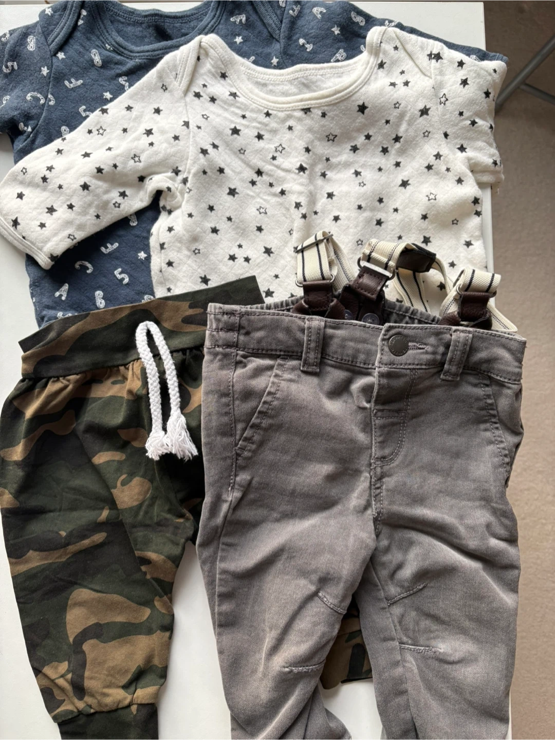 Lots of baby boy clothes, mostly size 0-6 months.