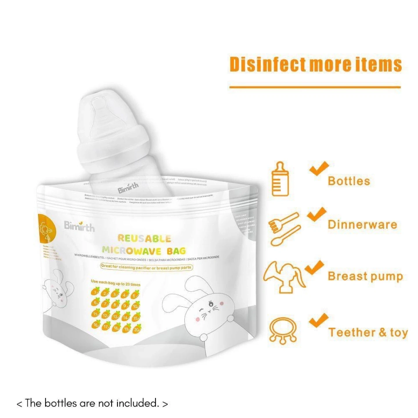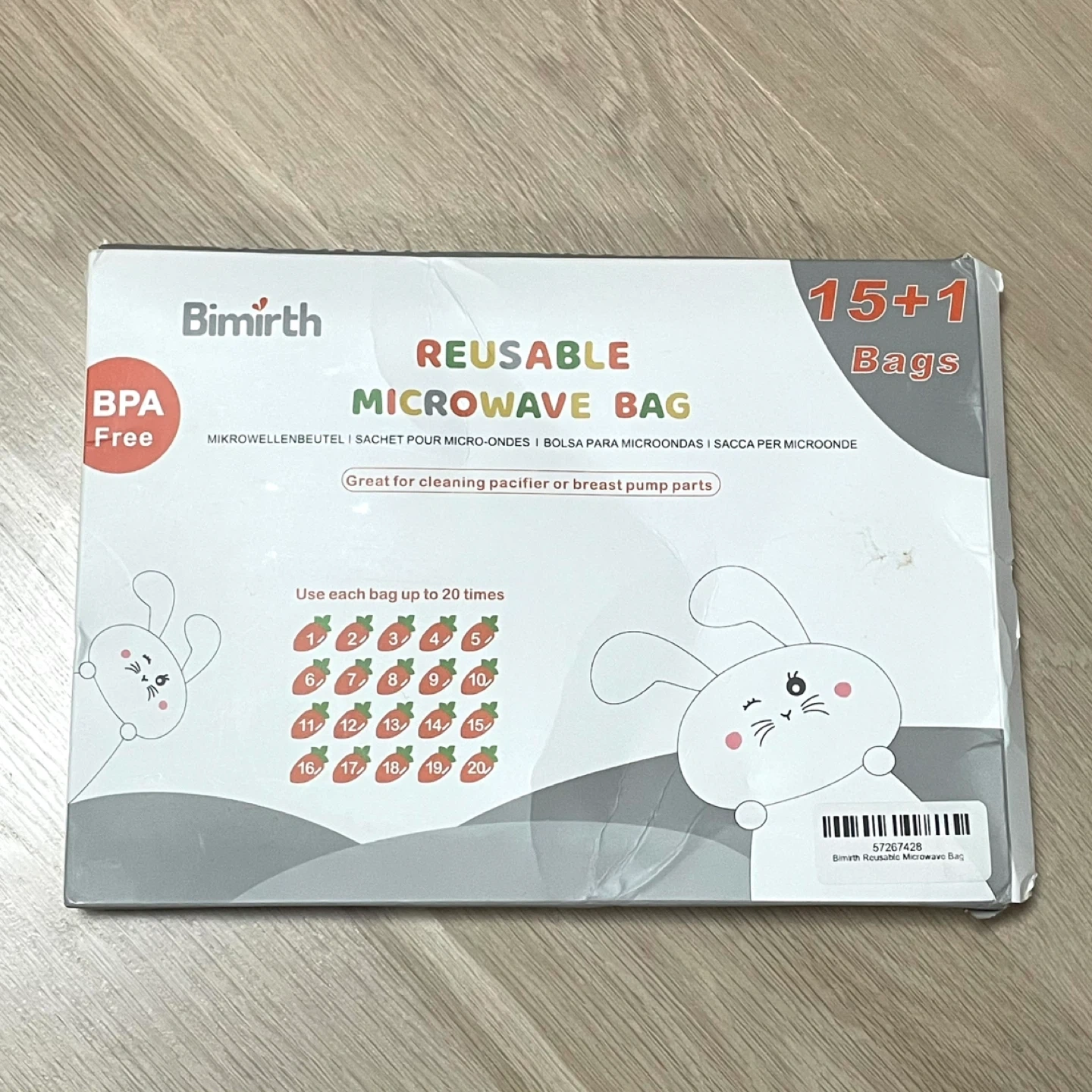 These Bimirth reusable microwave bags are great for cleaning pacifier or breast pump parts when you’re travelling. Each bag can be used up to 20 times. BPA free. I’ve opened the pack but didn’t need so many, there are probably around 12 or 13 bags left.